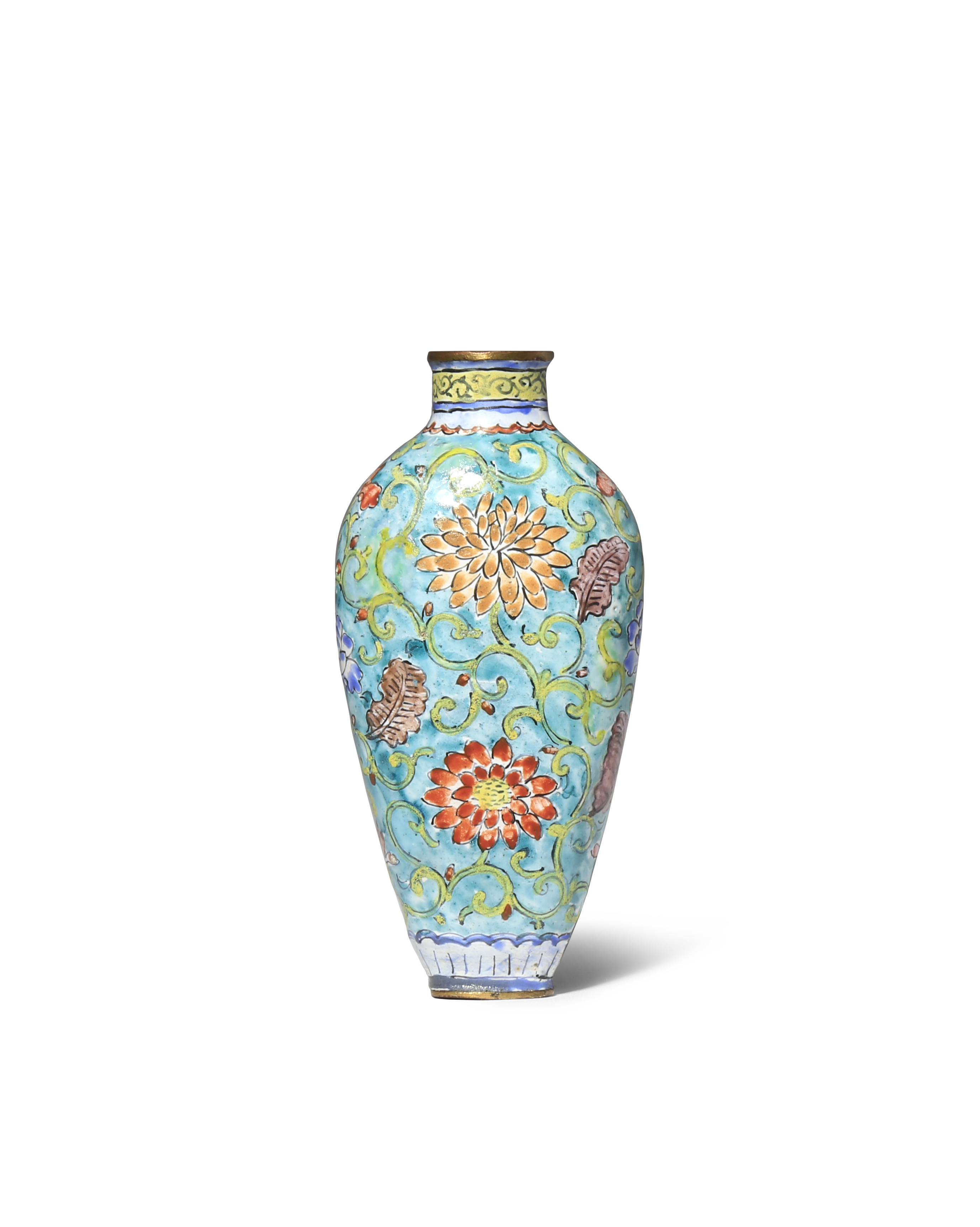 A CHINESE ENAMEL TURQUOISE-GROUND SNUFF BOTTLE