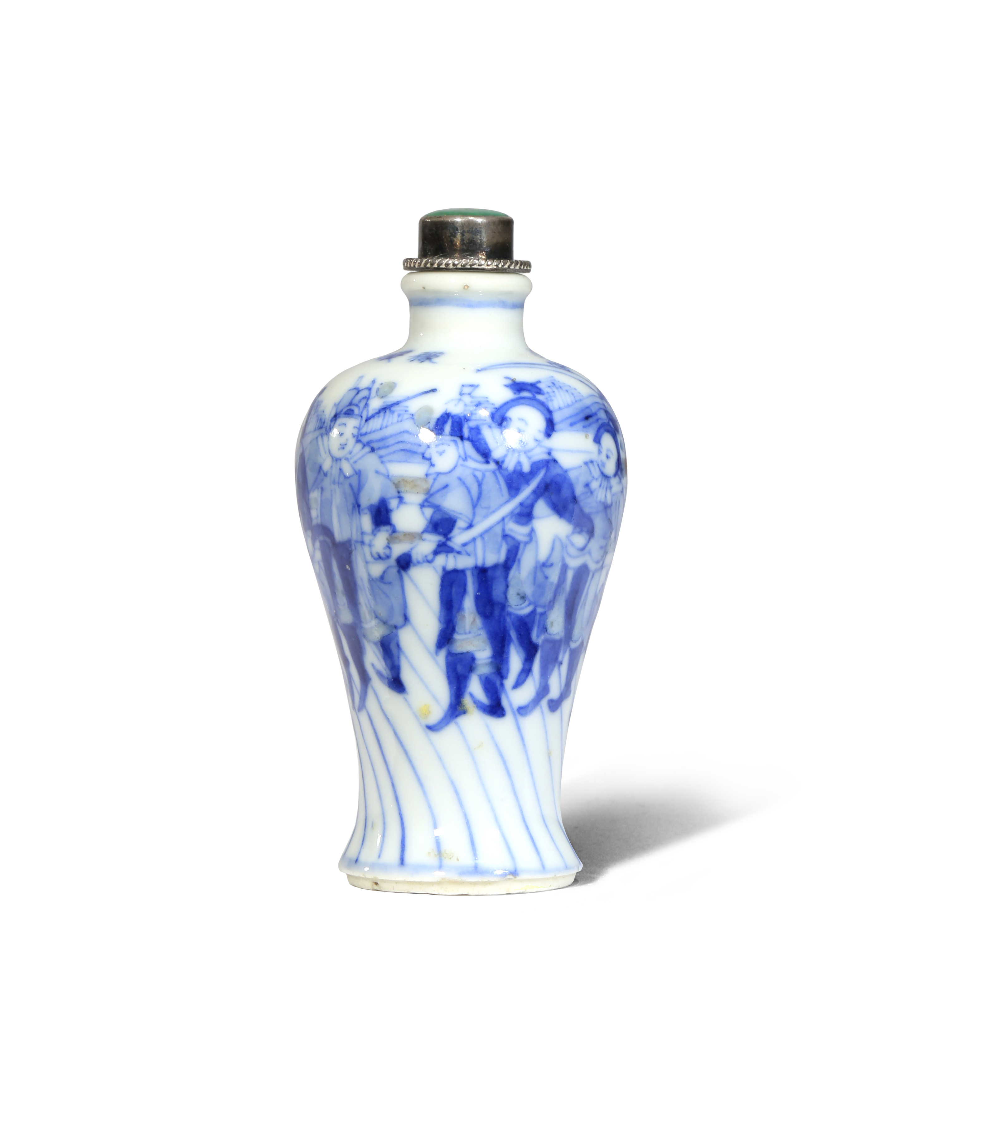 A CHINESE UNDERGLAZE BLUE AND RED MEIPING-FORM SNUFF BOTTLE 19TH CENTURY Painted with a...