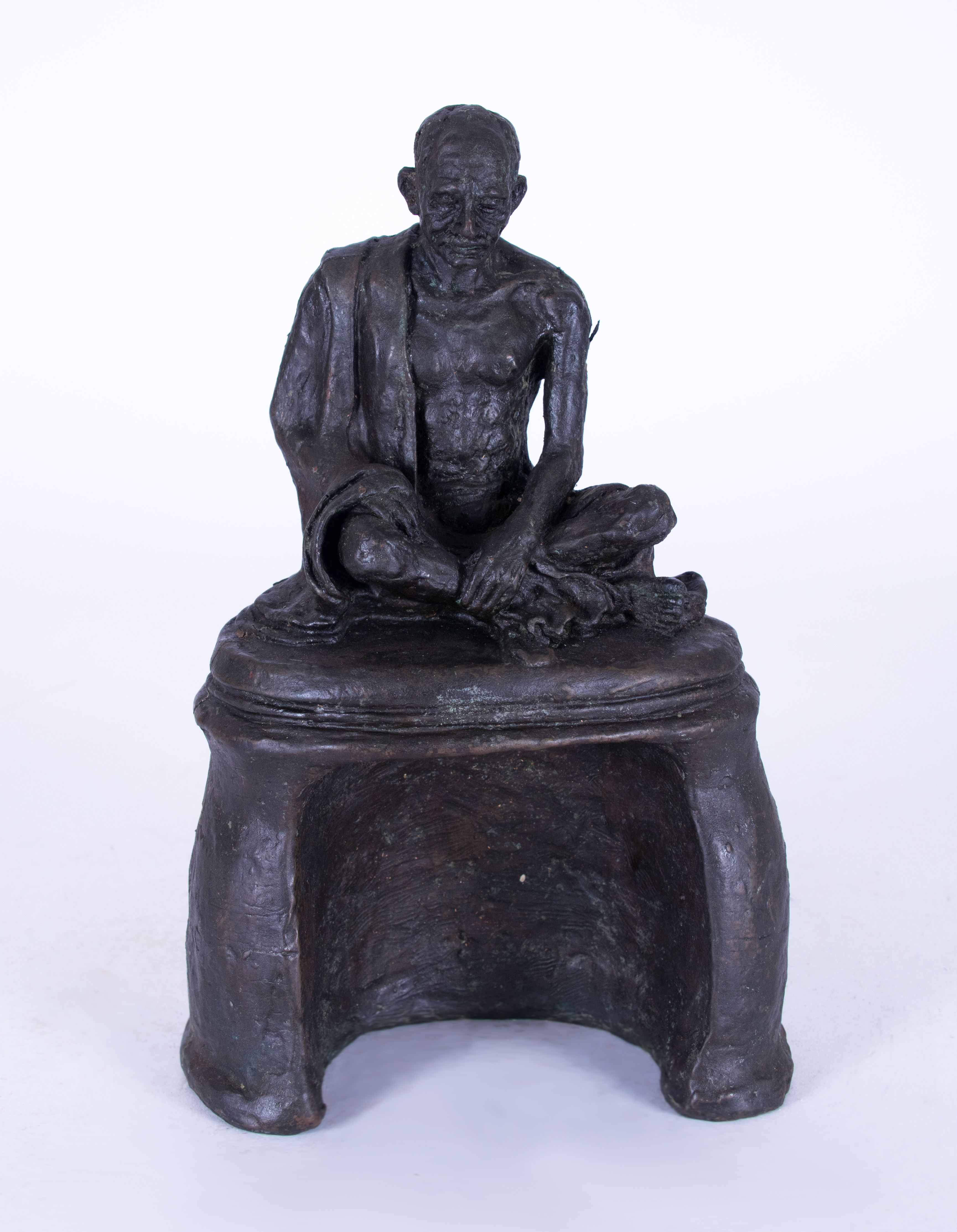 Mahatma Gandhi (Indian, 1869-1948), two small maquettes. Gandhi was an activist and leader of the Indian independence movement against British colonial rule, one a miniature version of the bronze seated Gandhi in Tavistock Square; one walking, as submitted to the Gandhi Memorial Committee