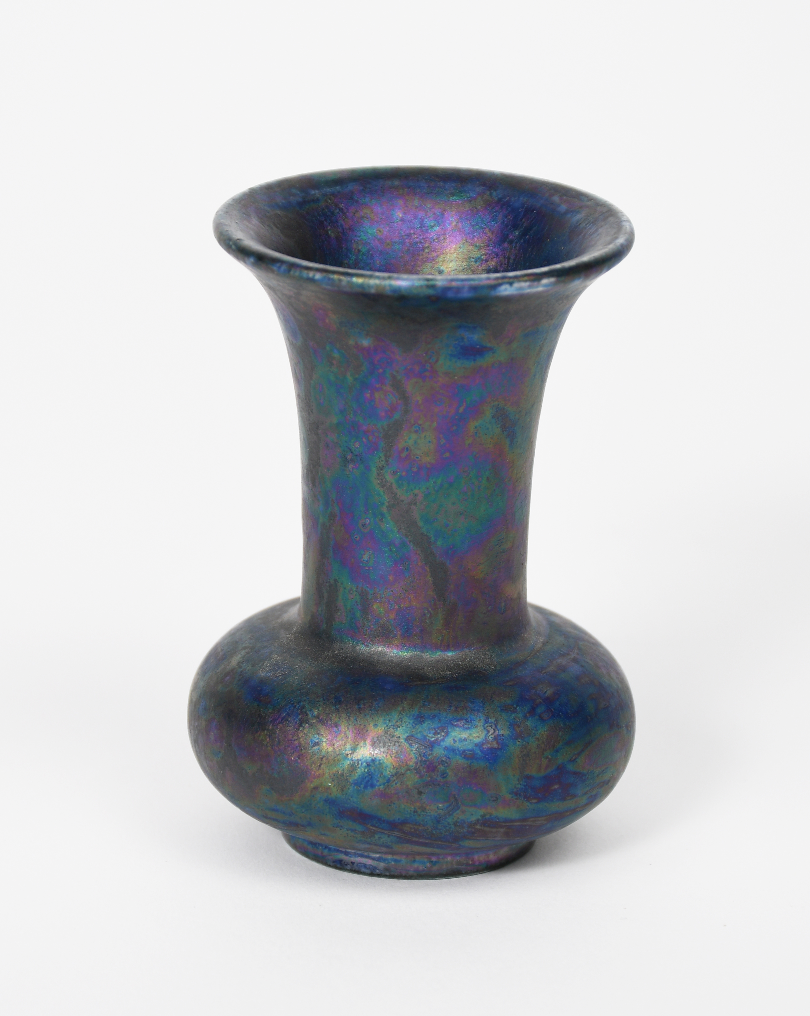 A Ruskin Pottery miniature Kingfisher lustre stoneware vase by William Howson Taylor