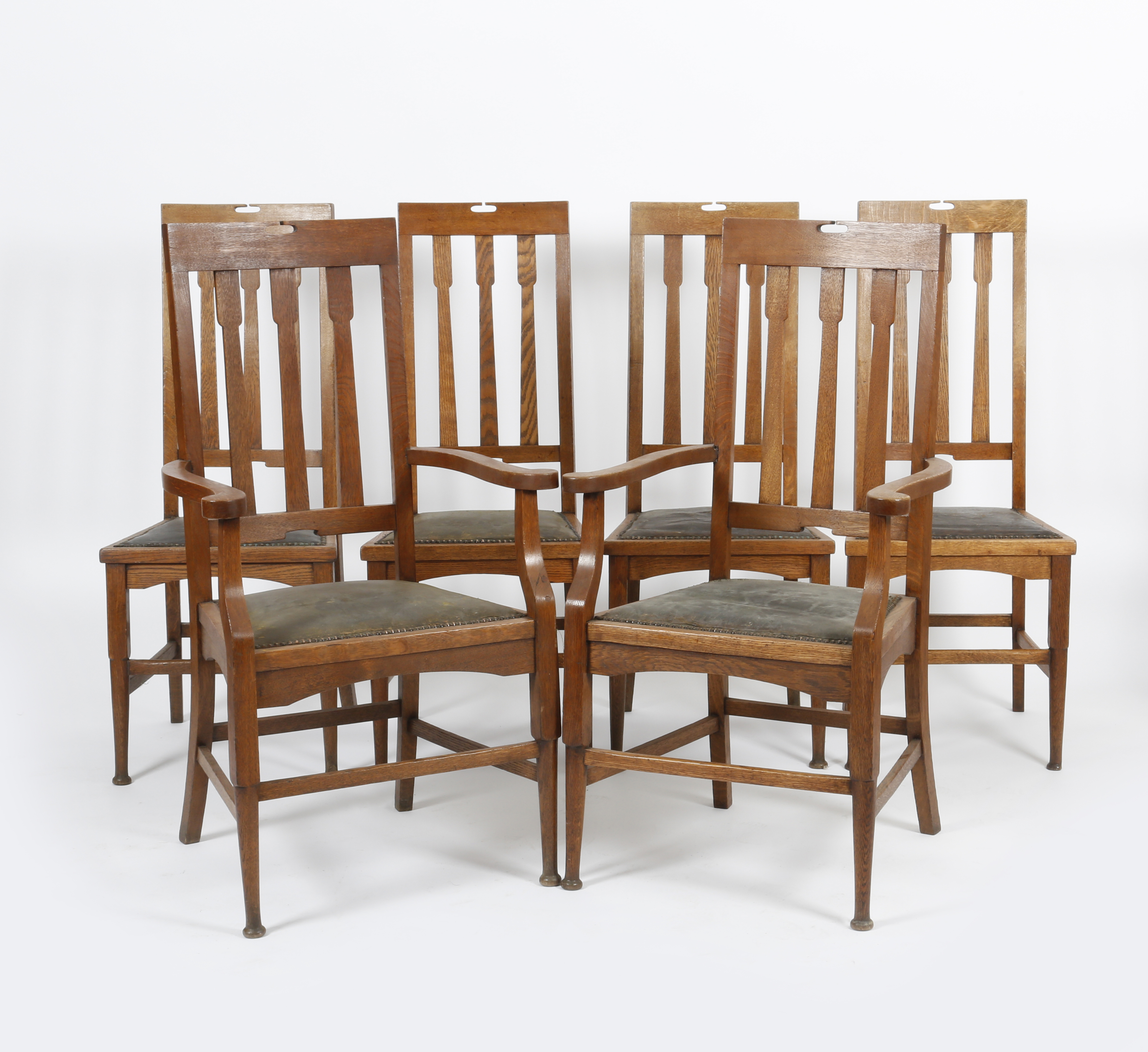 A set of six Scottish School dining chairs the design attributed to Ernest Archibald Taylor