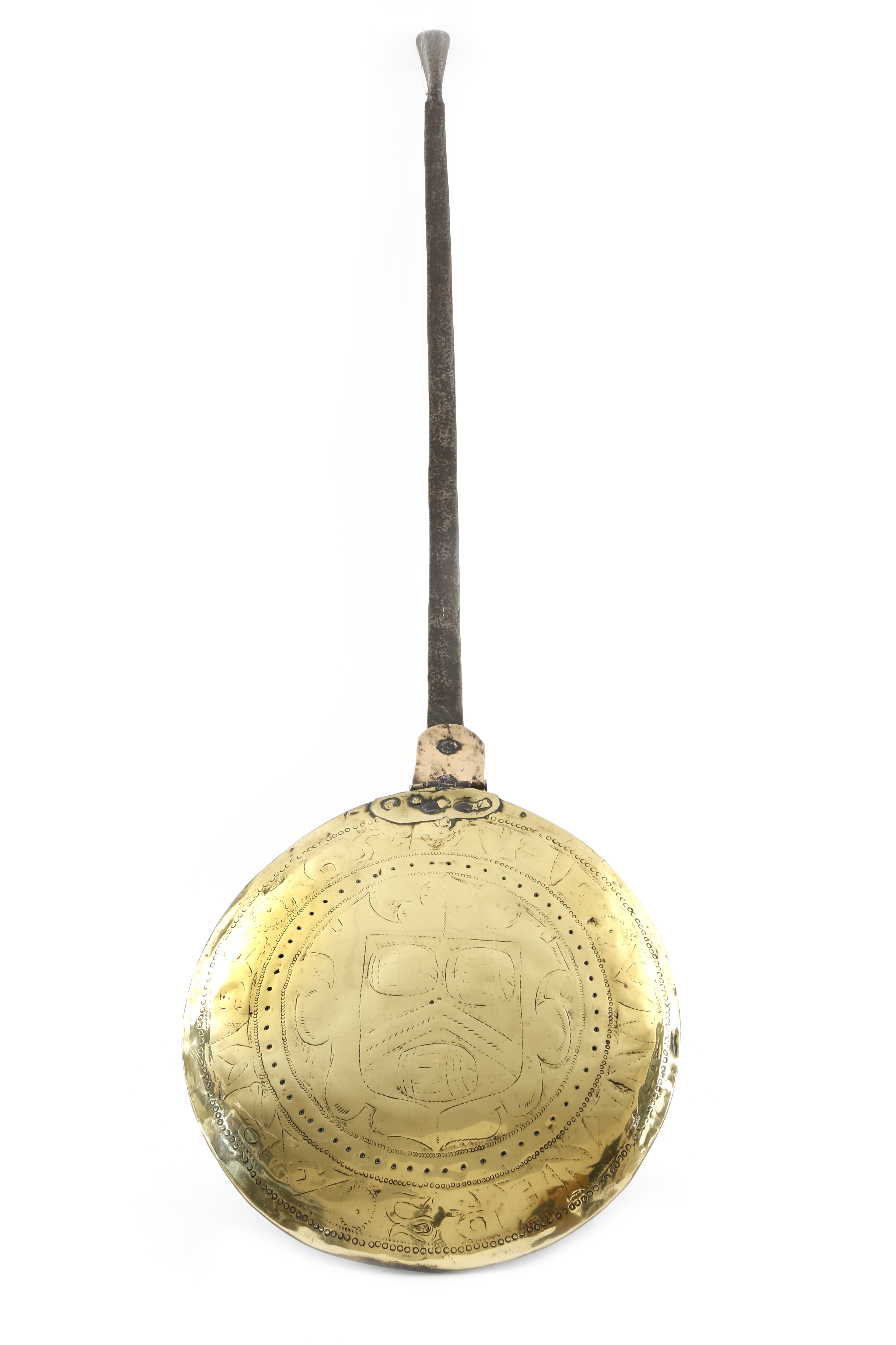 A Charles II brass warming pan