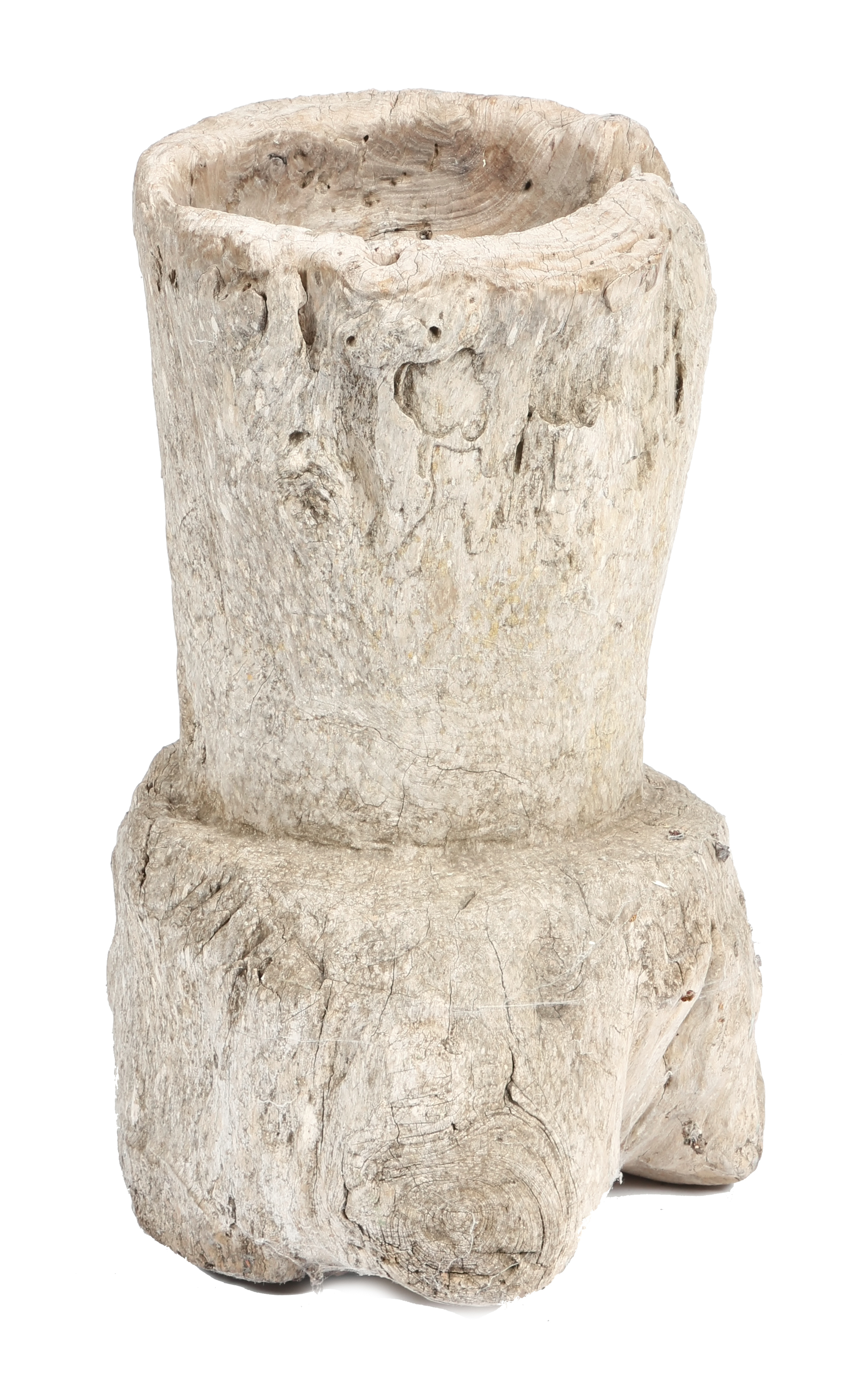 A dug-out burr elm wood vessel, possibly a mortar, 58cm high.
