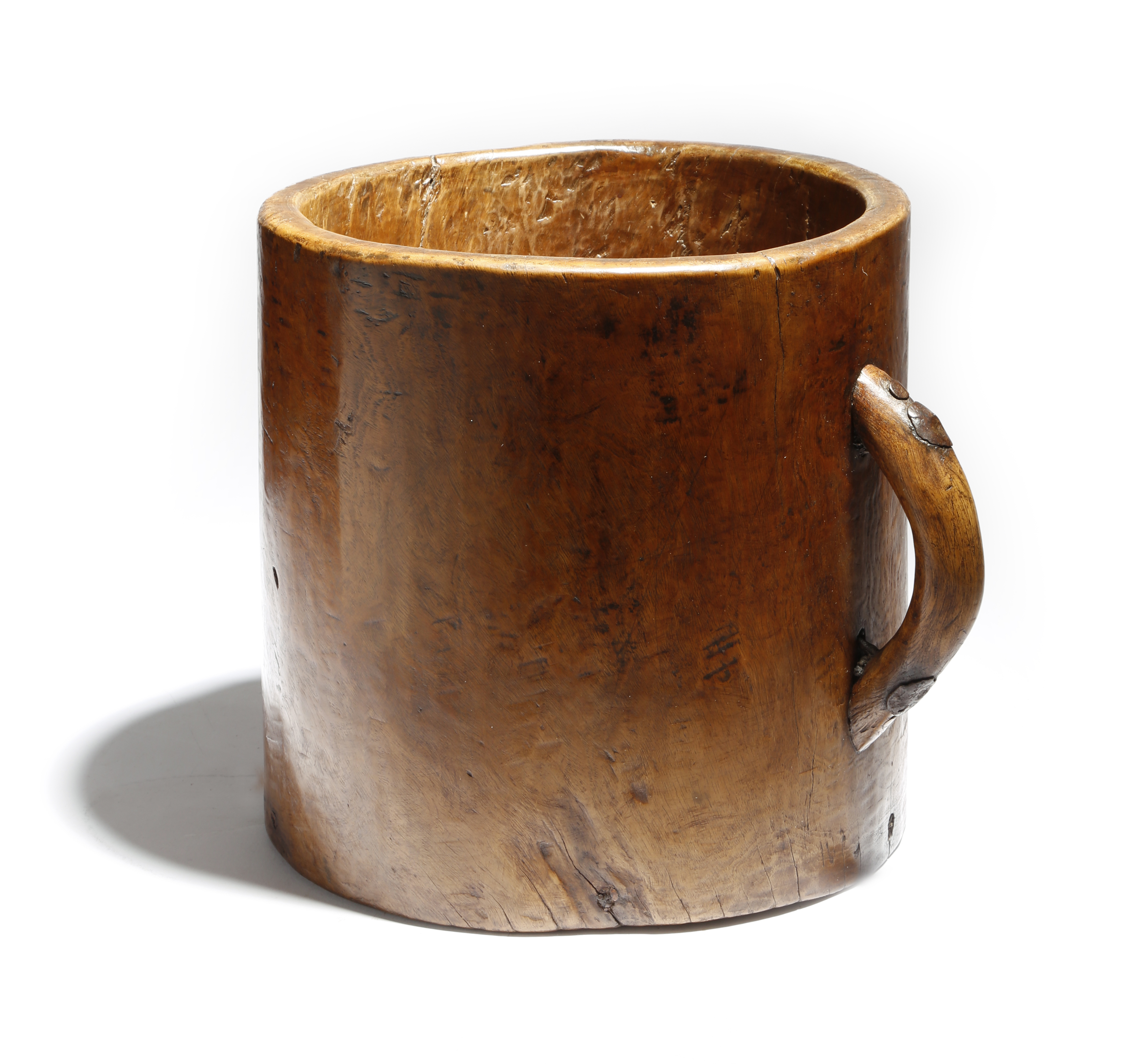 A 19th century Flemish treen elm measure, 27.5cm high, 25.5cm diameter.