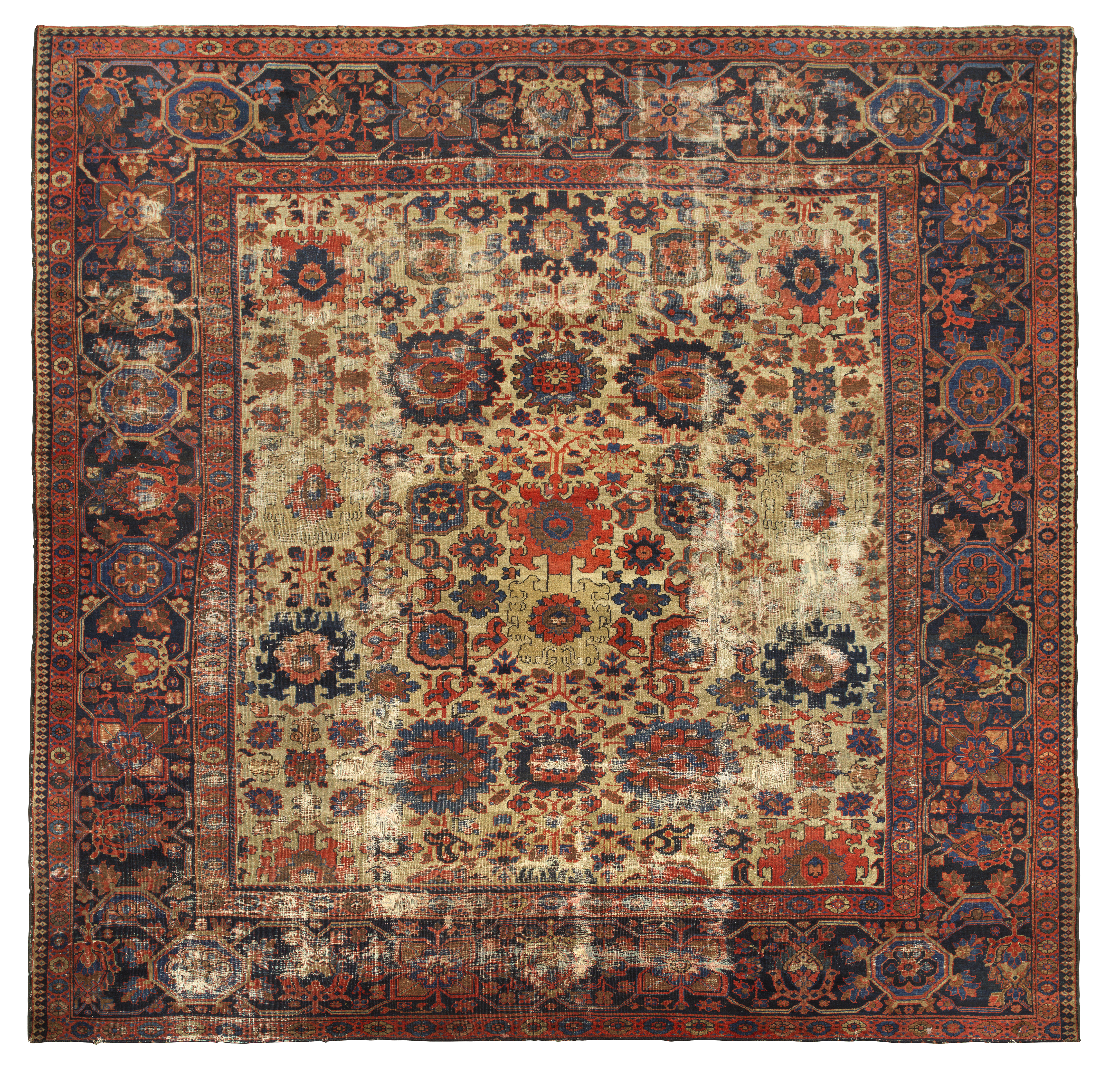 A fine 19th century North West Persian carpet of Harshang design, of unusual square shape, the ivory field with an all-over design and with a wide floral border, probably Azerbaijan, 443 x 456cm.