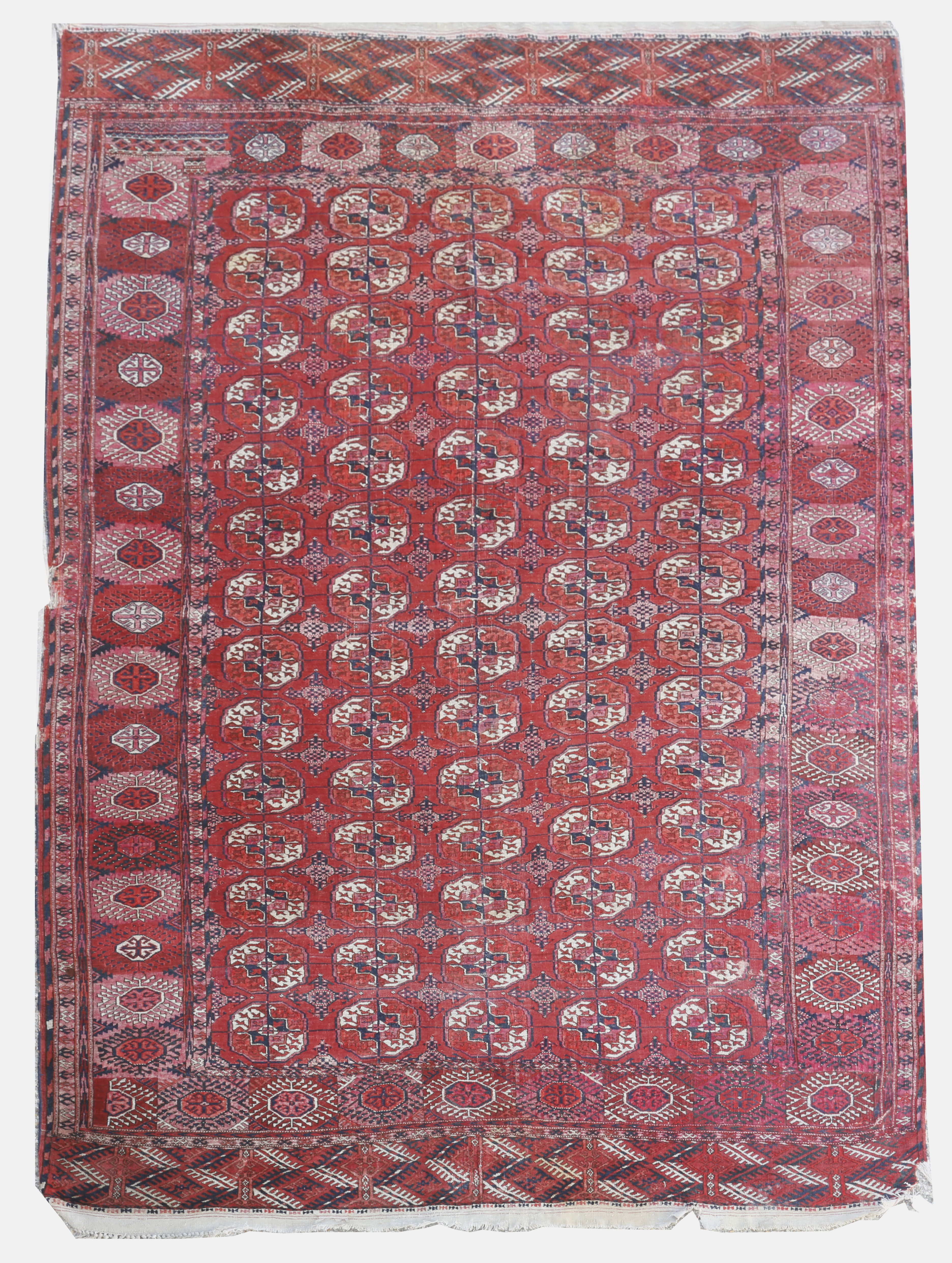 A Tekke Turkmen carpet, Turkmenistan, with an unusual additional alternative border design, early 20th century, 339 x 212cm.