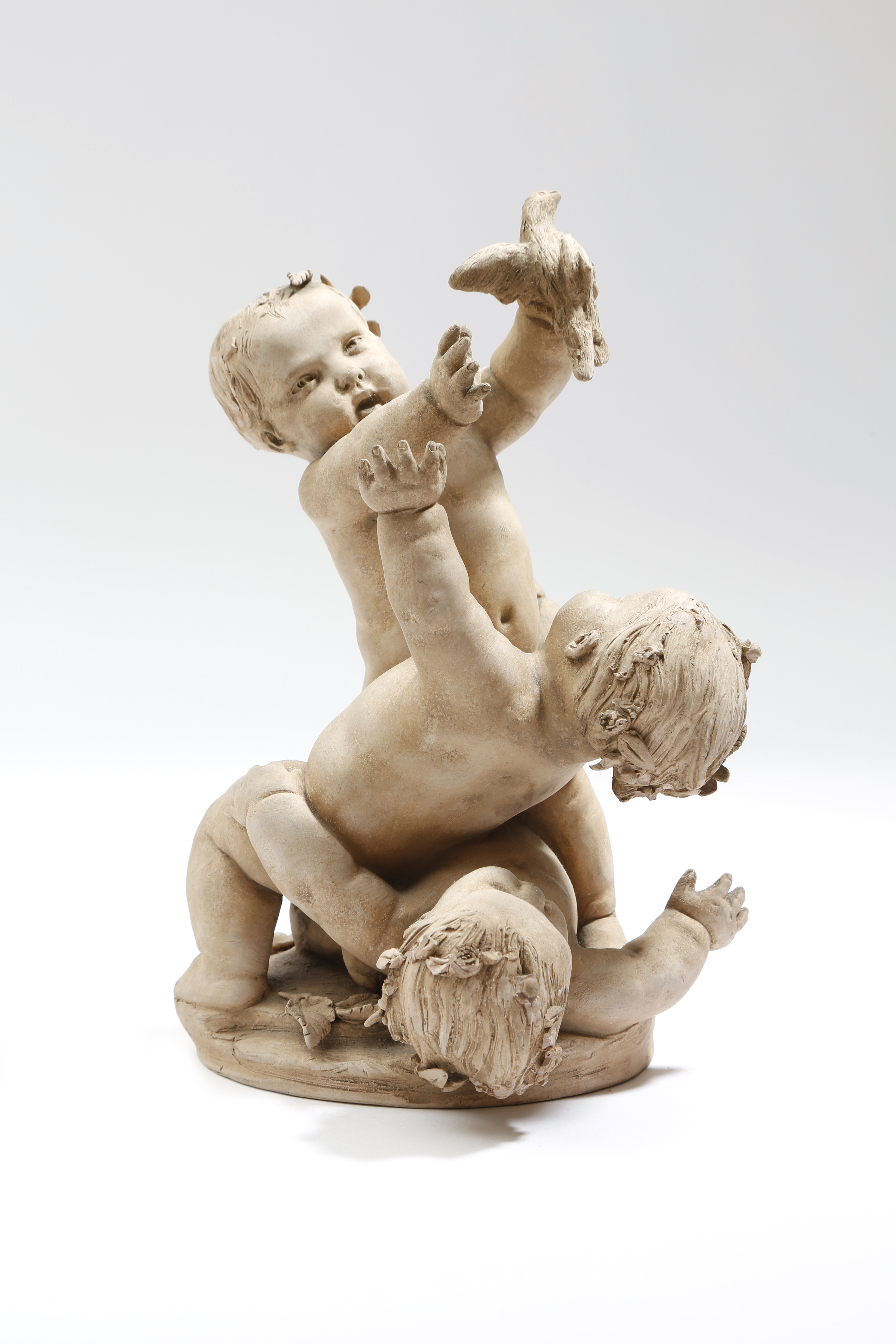 A French terracotta group of three cherubs in the manner of Clodion