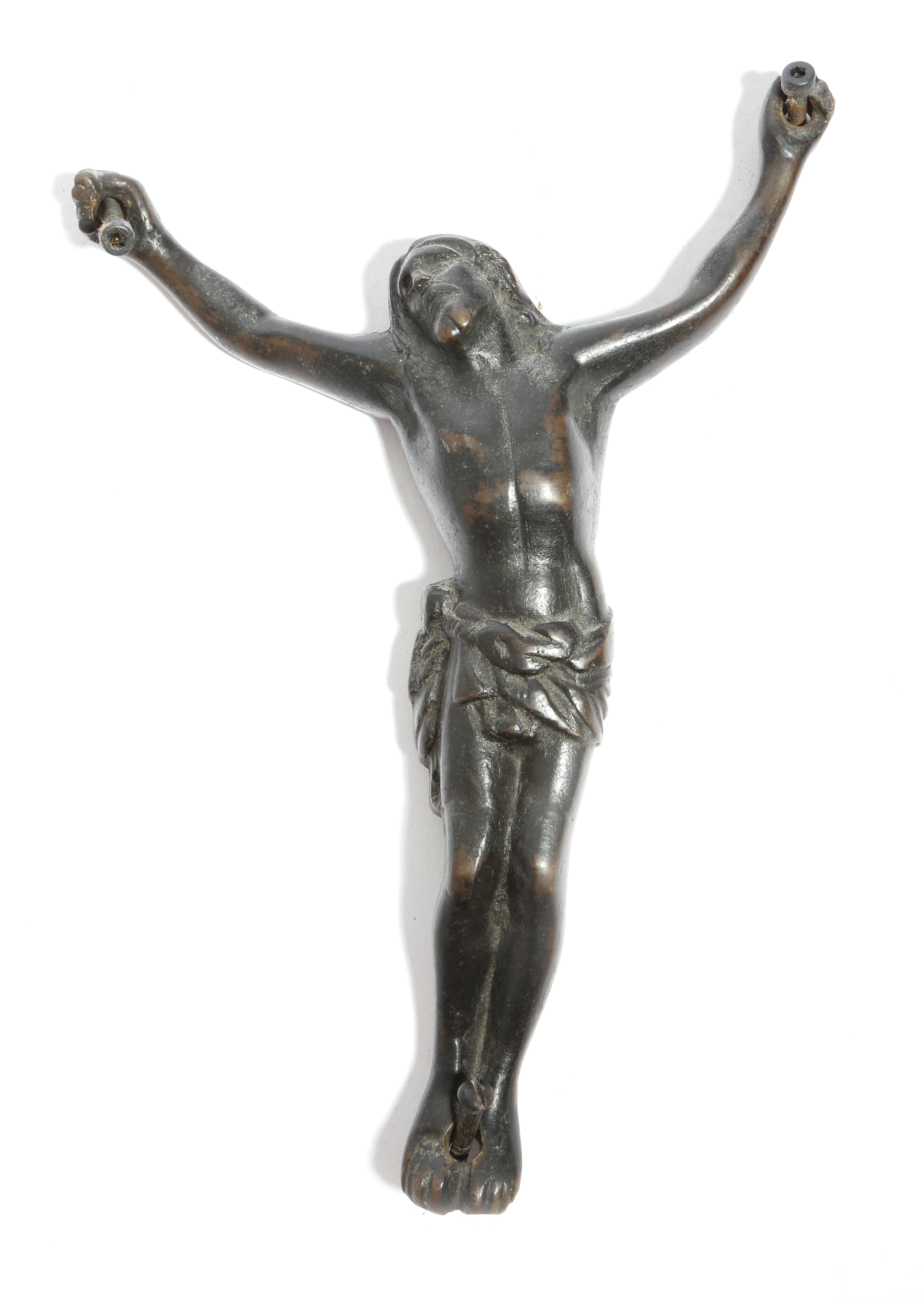 A German cast bronze Corpus Christi, with an open back, 17th century, 24 x 16cm.
