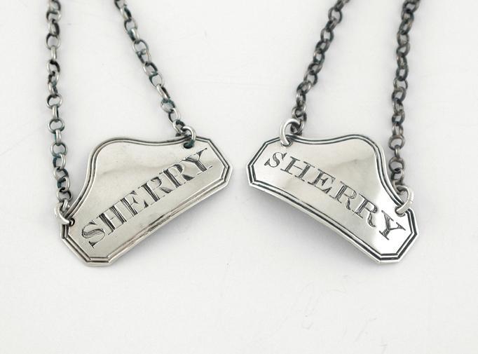 Two similar George III wine labels, with arched surmounts and reeded borders, both incised 'SHERRY', one by Thomas Wallis, London 1809; the other by another maker (mark mis-struck), London 1817. (2)