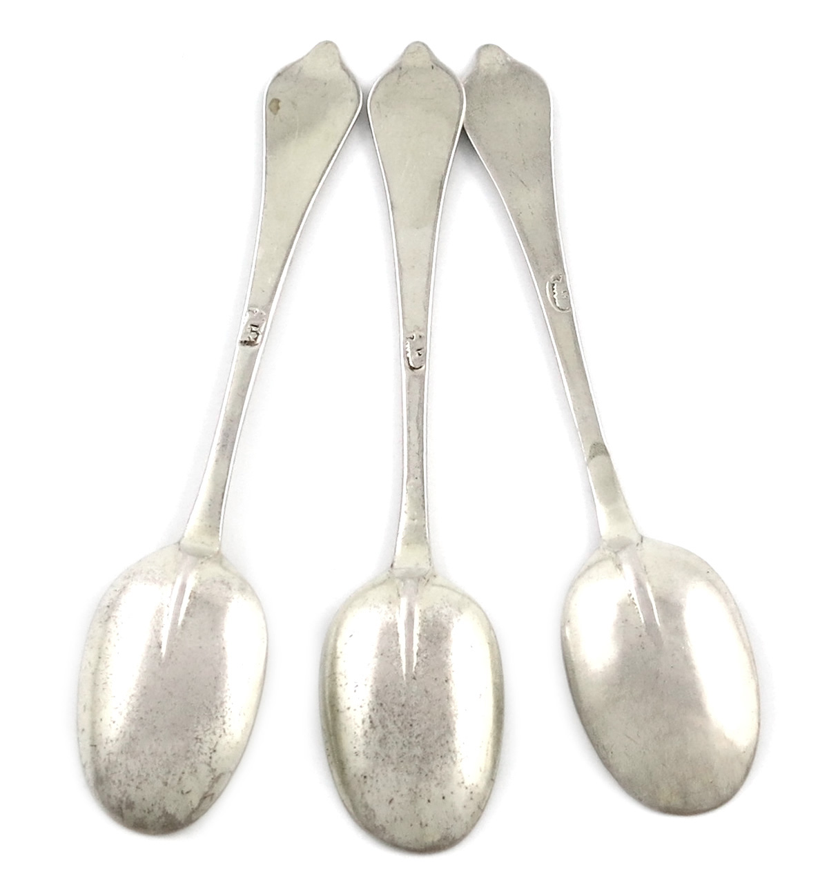 the oval bowl with a plain rat-tail, length 11.8cm, approx. weight 1oz. (3)