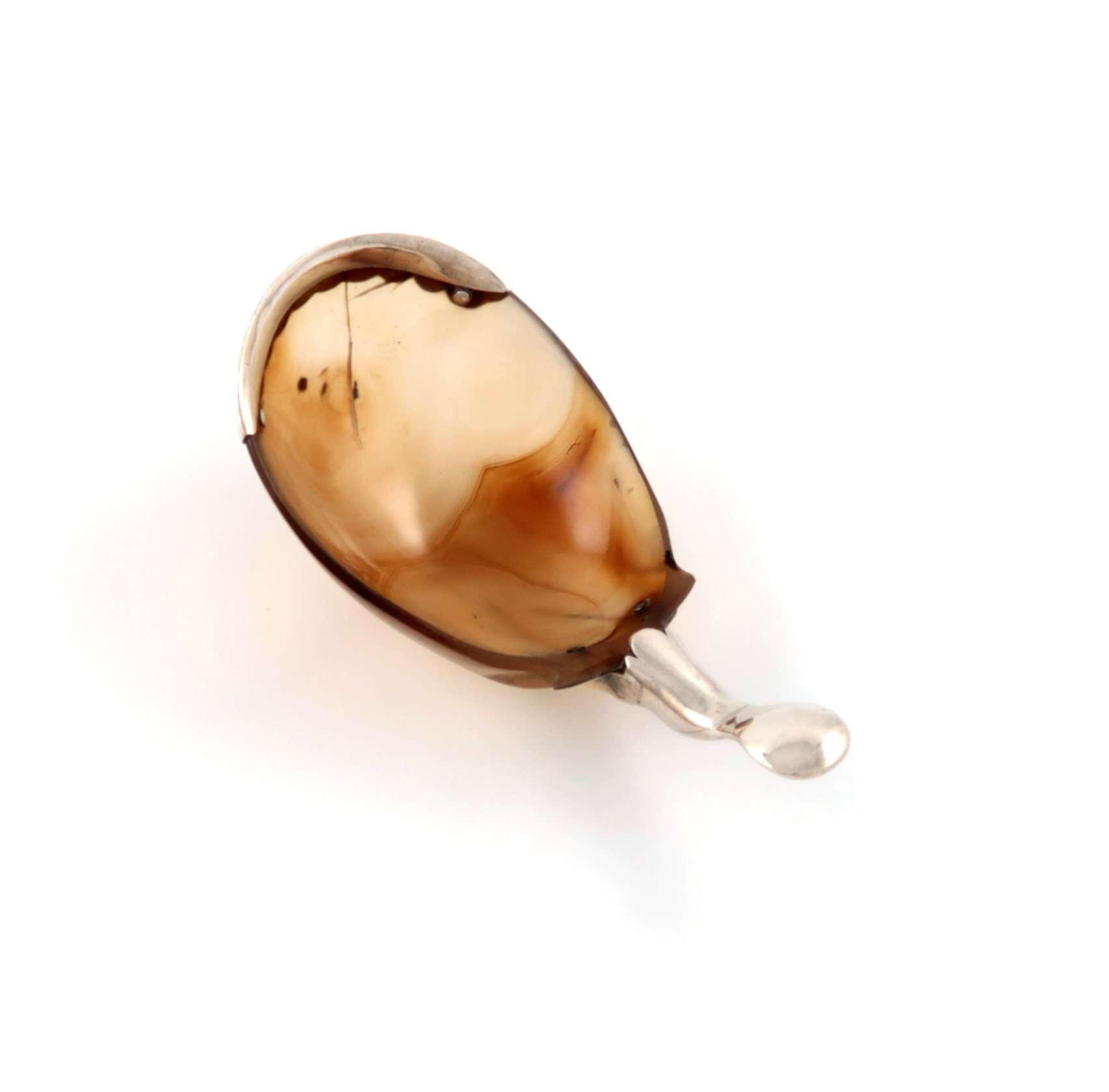 deep oval bowl with a plain mount and plain handle, old crack to bowl, length 8.9cm.