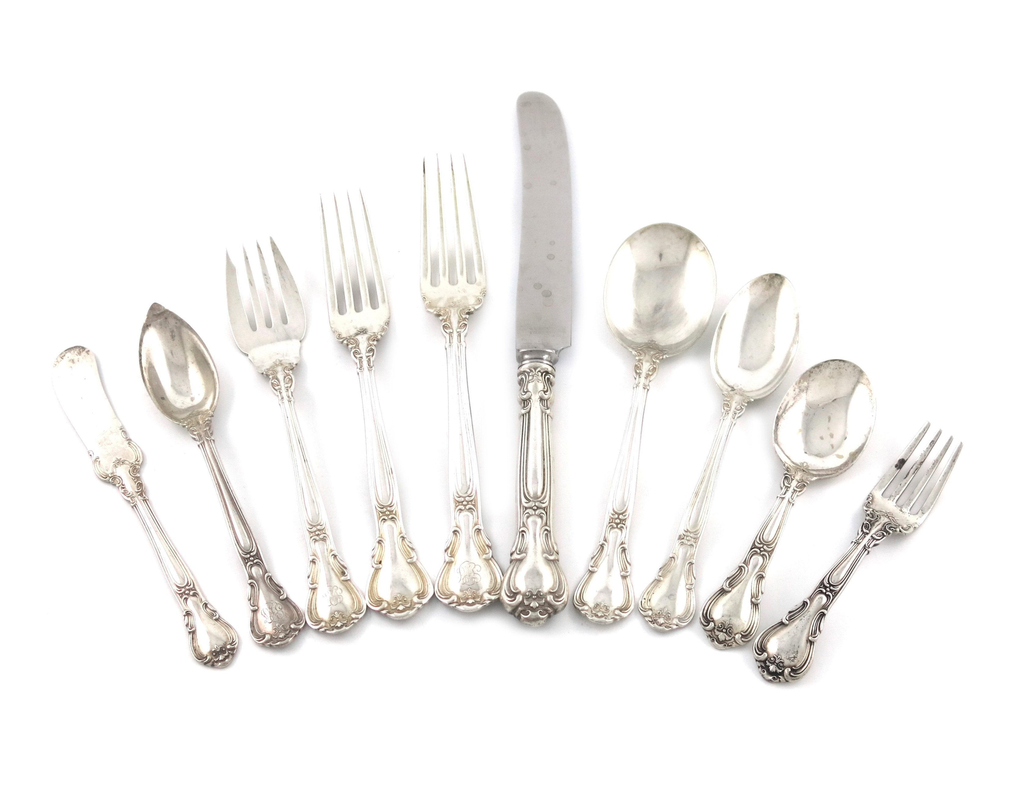 comprising: four table forks, three dessert forks, six table knives, ten butter knives, six fish forks, six soup spoons, ten teaspoons, five grapefruit spoons, plus a baby spoon and fork, approx. weighable 47oz. (qty)