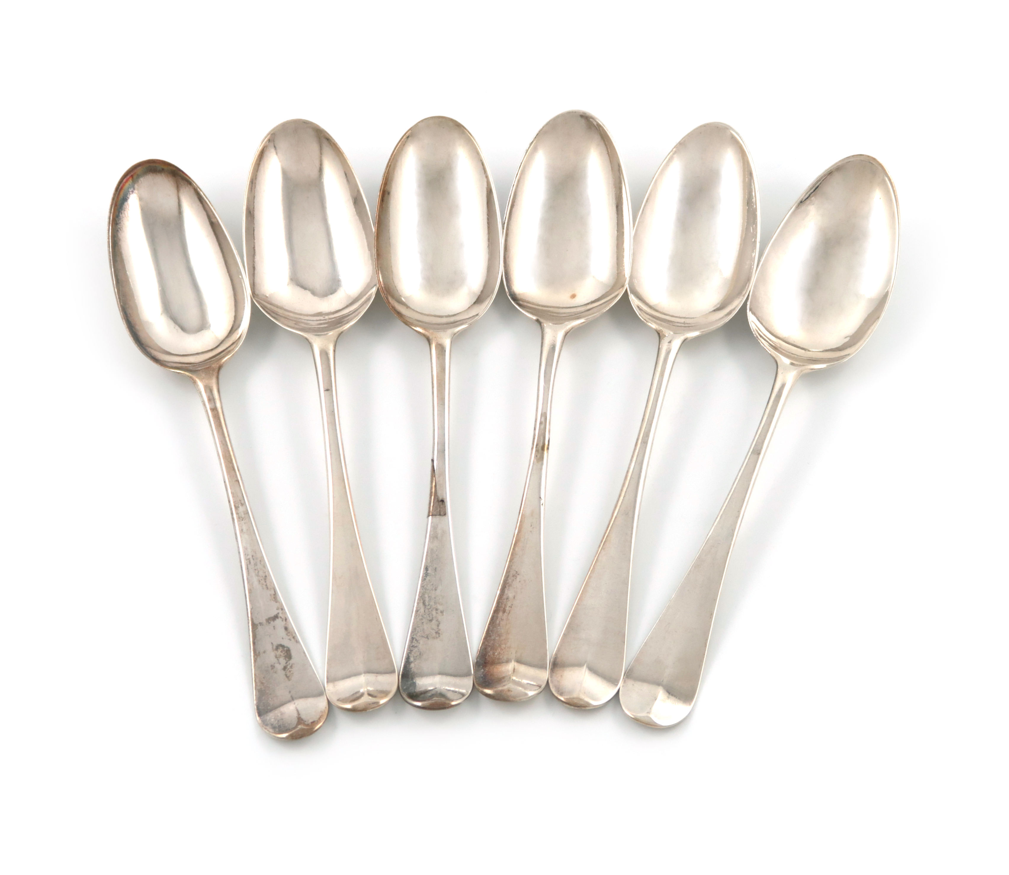 A set of six George II silver Hanoverian pattern dessert spoons