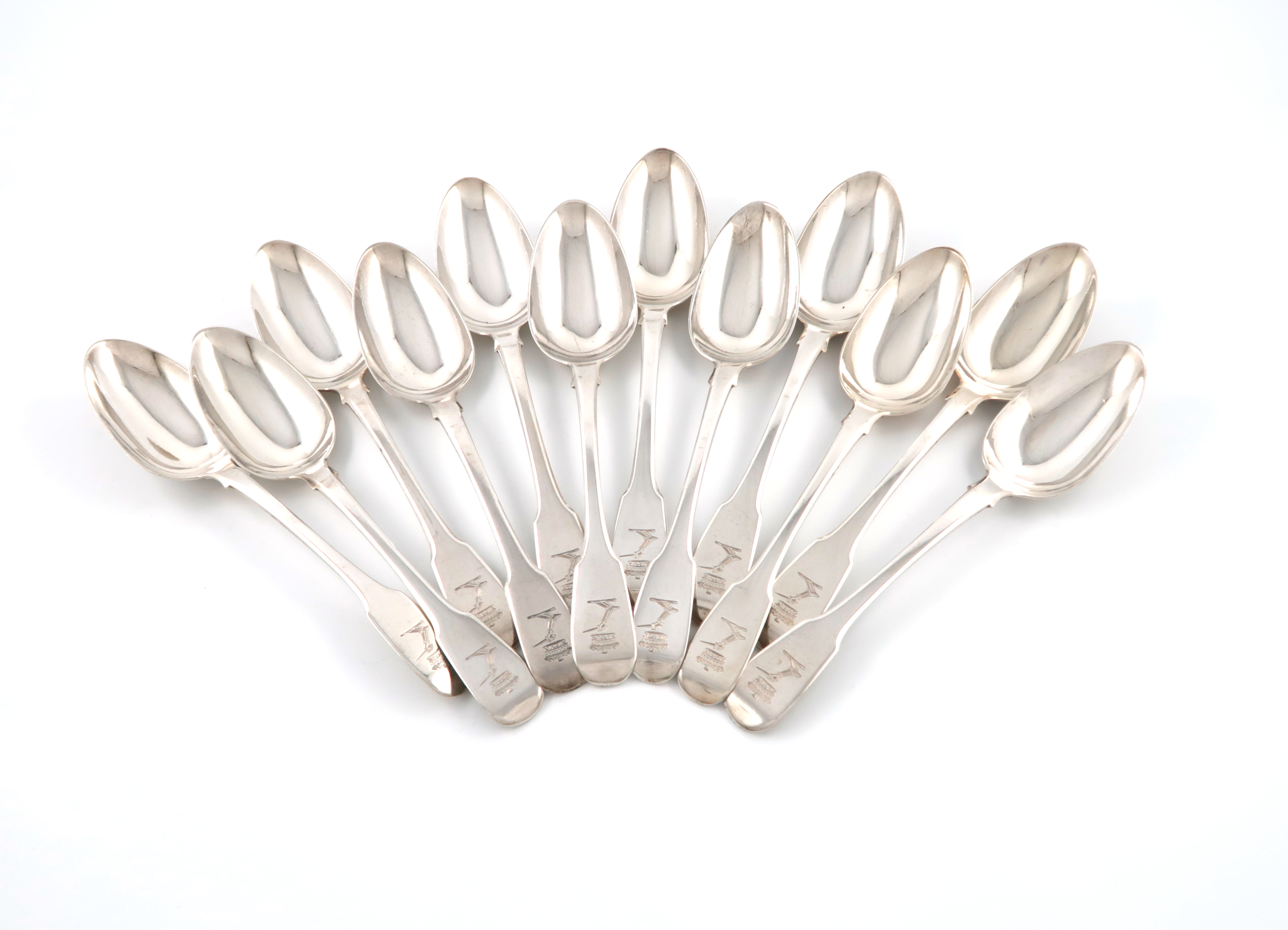 A set of twelve George III silver Fiddle pattern tablespoons,