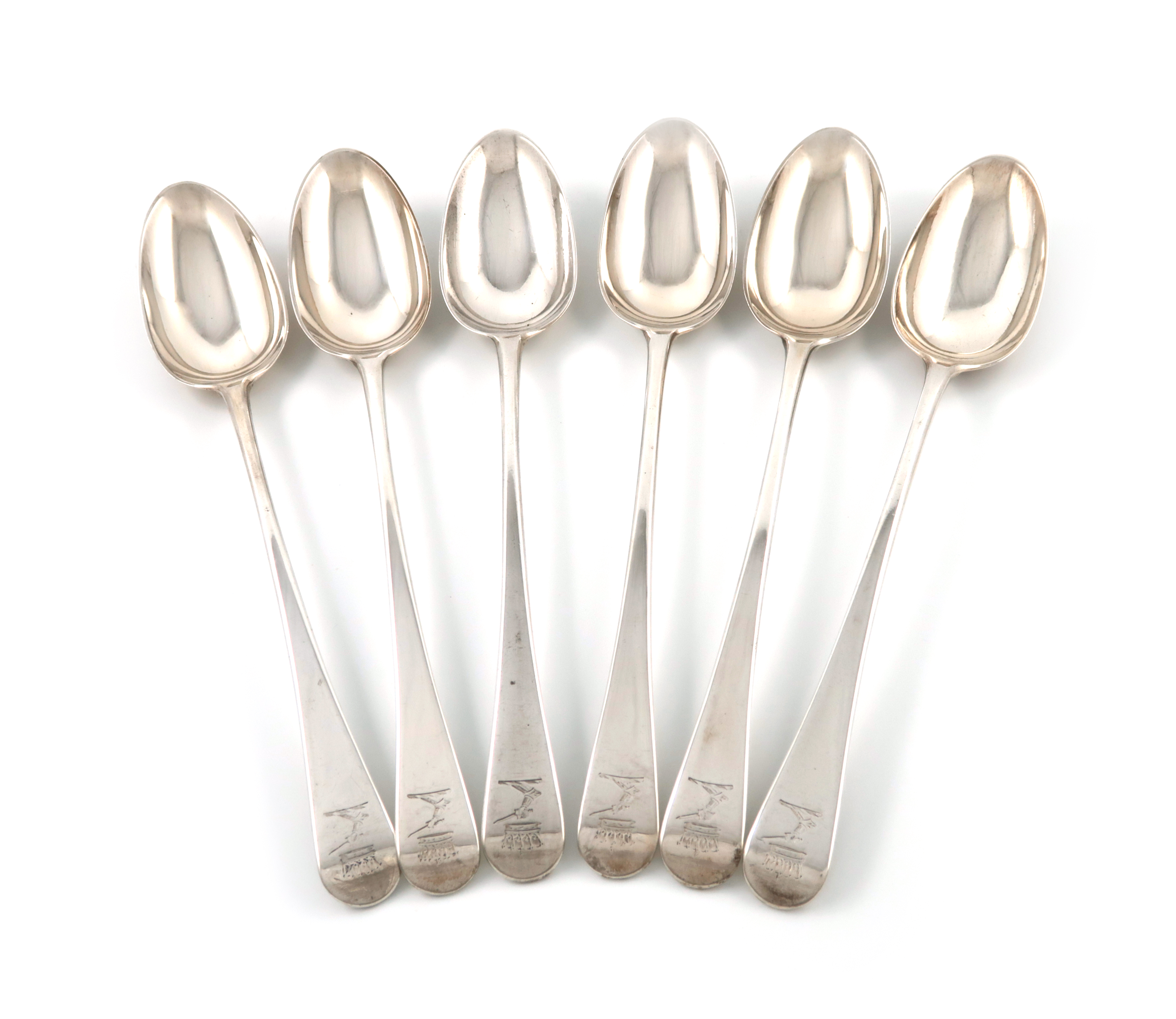 the terminals with a crest, length 27cm, approx. weight 19.5oz. (6)