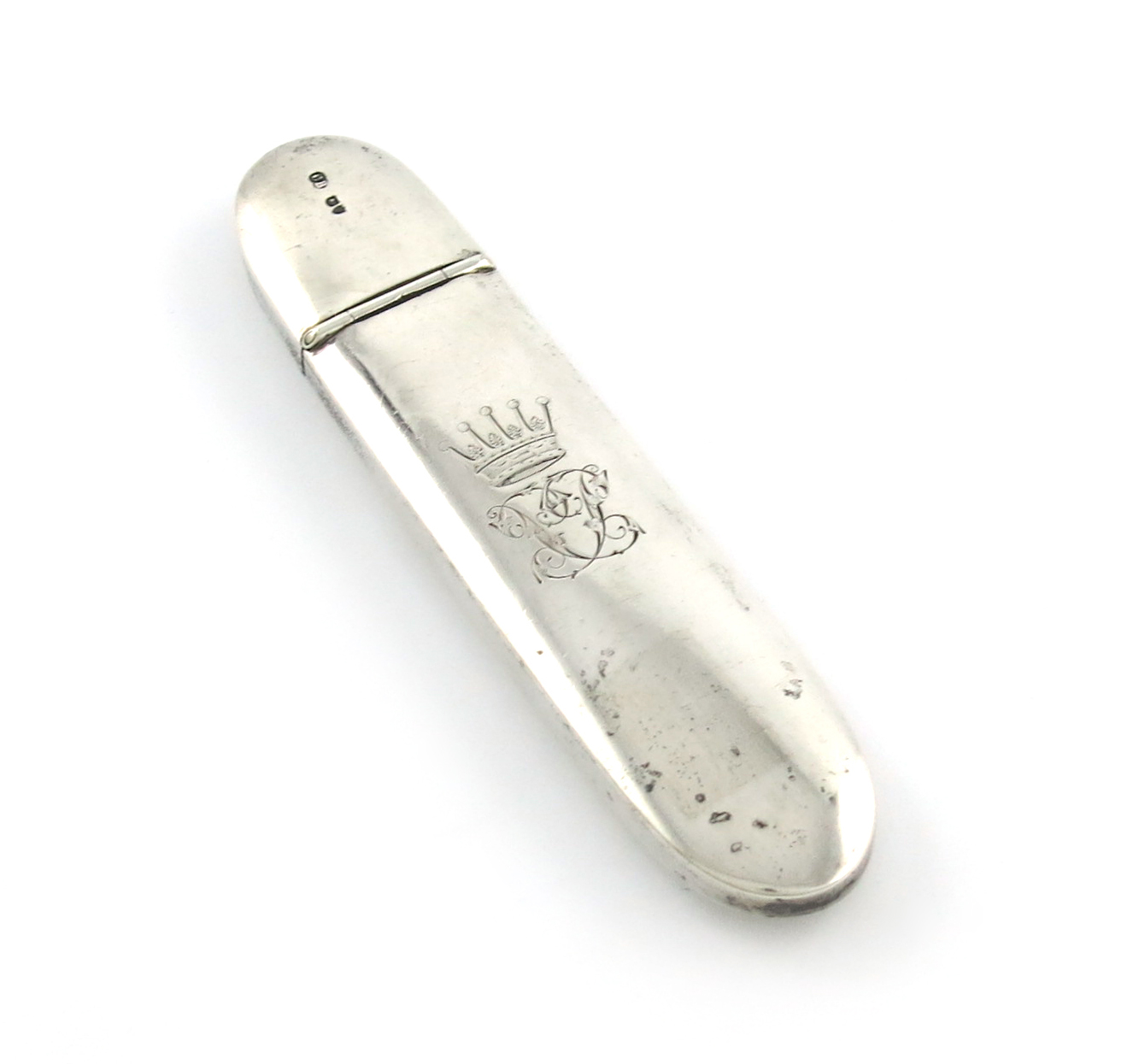 rounded rectangular form, engraved with a crowned monogram, the reverse inscribed 'Earl Poulett Army and Navy Club, London SW', length 15cm, approx. weight 2.7oz.
