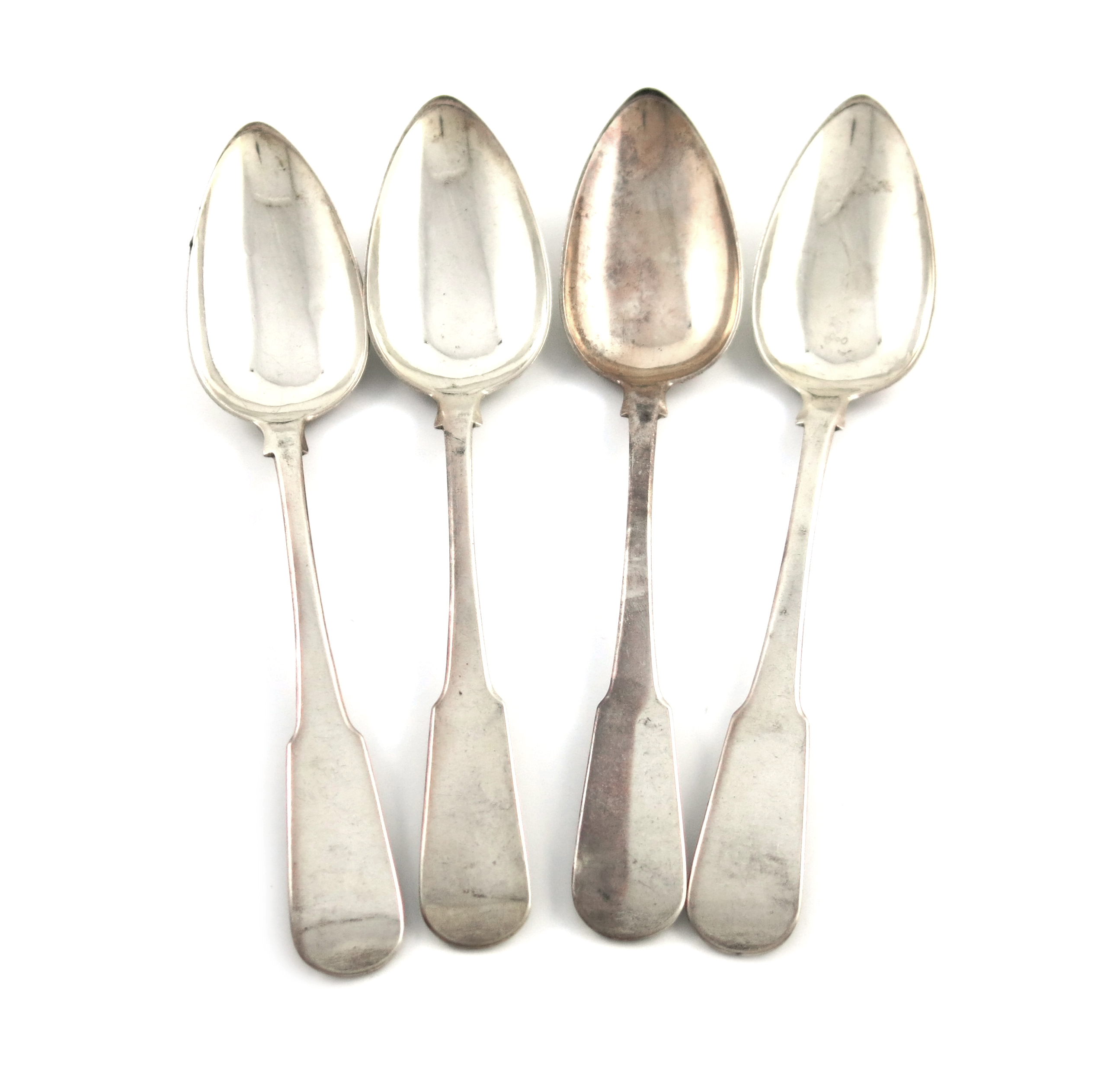 A set of four George III Scottish provincial silver Fiddle pattern tablespoons
