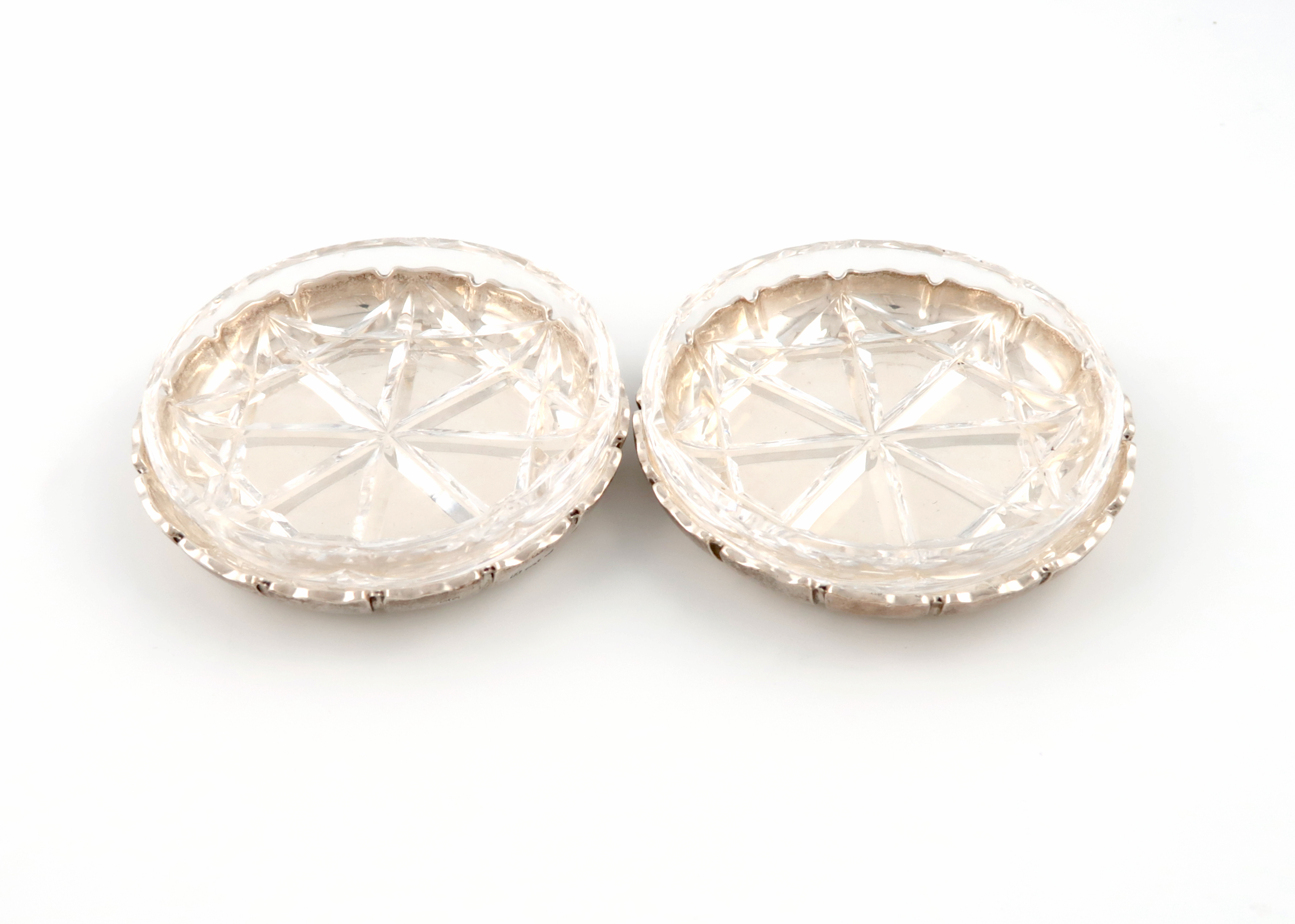 with later glass liners for butter, diameter 10.8cm, approx. weight 17.3oz. (2)