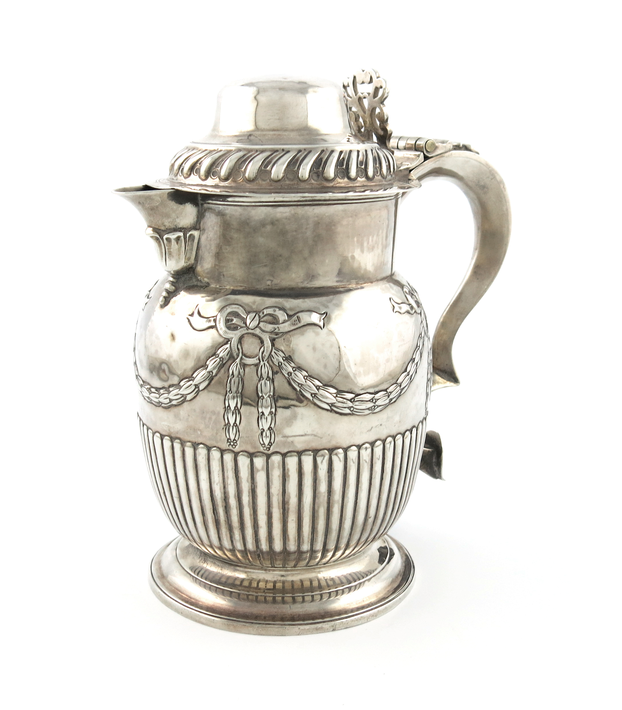 baluster form, part-fluted decoration below ribbon tied swags, height 20cm, approx. weight 21oz.