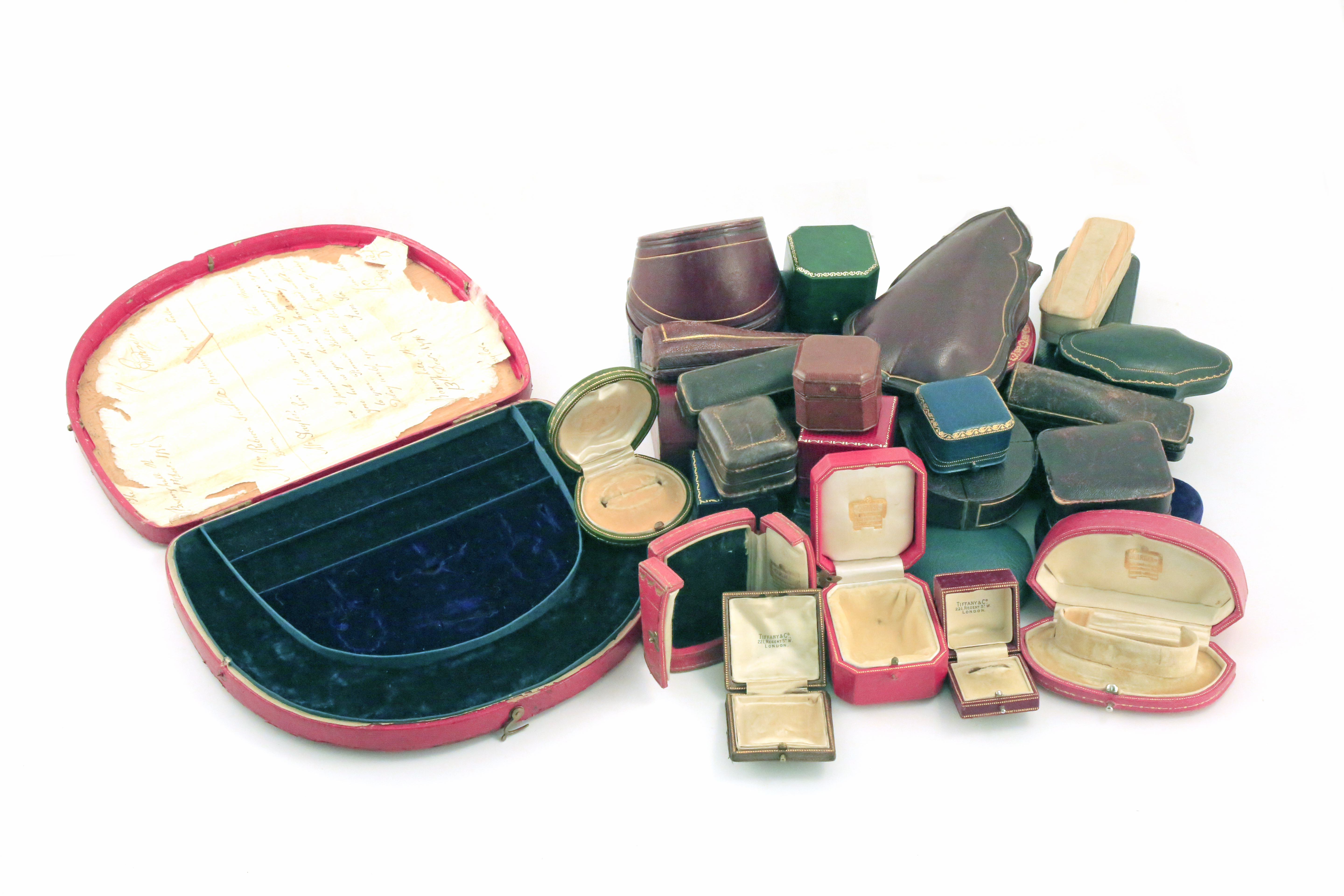 A quantity of antique jewellery boxes, including four by Cartier and two by Tiffany & Co