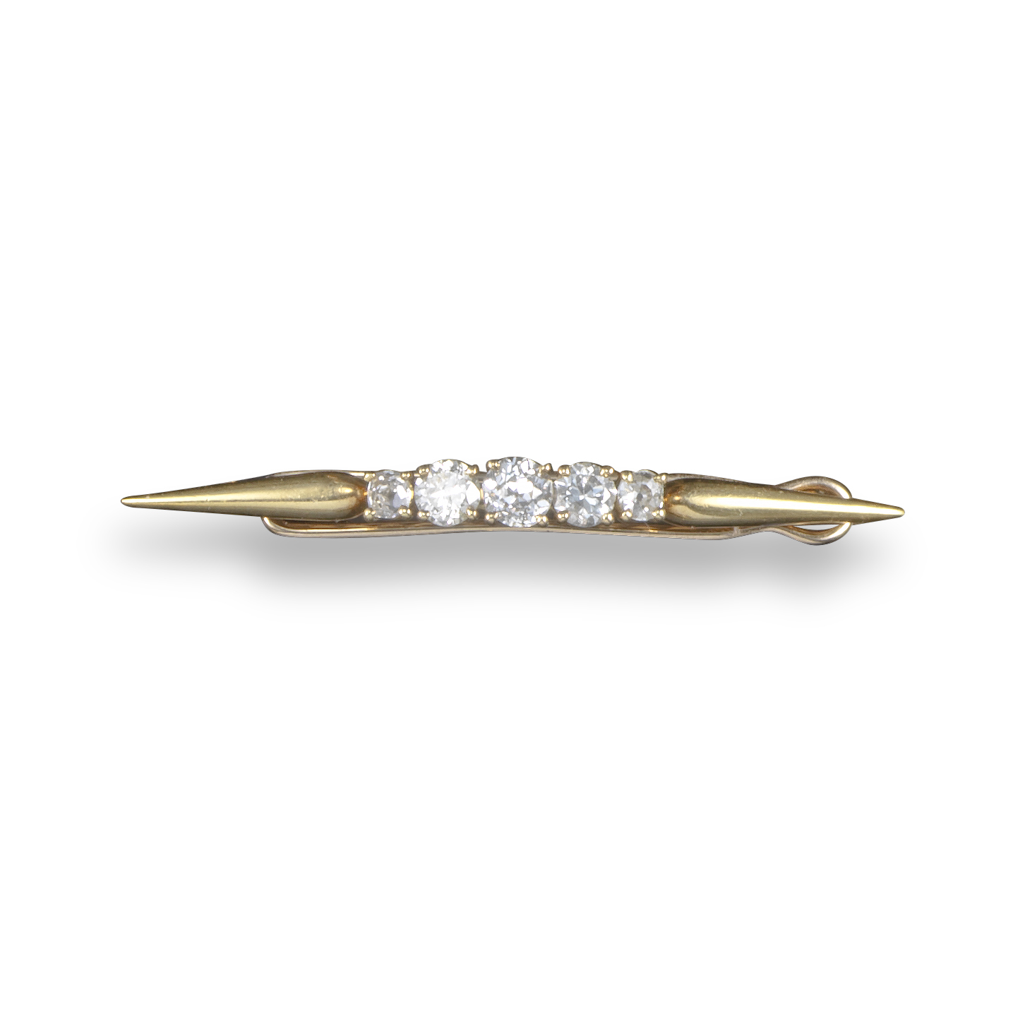 A diamond-set gold hair clip by Cartier, set with five graduated circular-cut diamonds in yellow gold, signed Mtd Cartier, with maker's mark and London hallmarks for 1981, 4.3cm wide, Cartier case