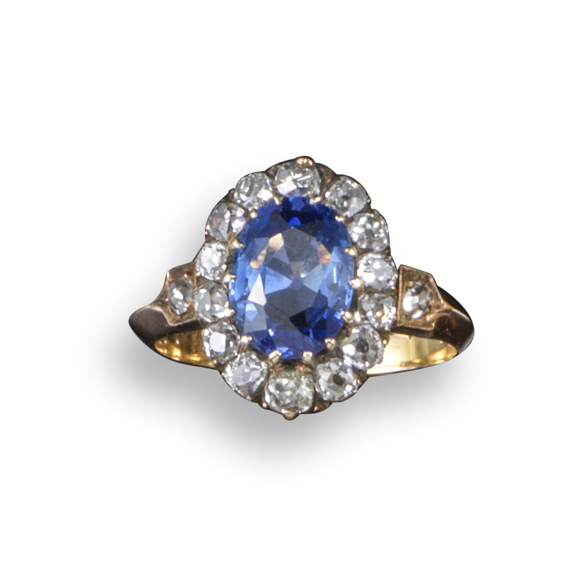 A late Victorian sapphire and diamond cluster ring