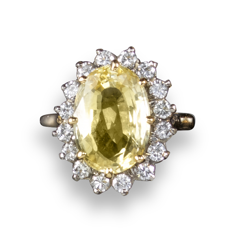 A yellow sapphire and diamond cluster ring