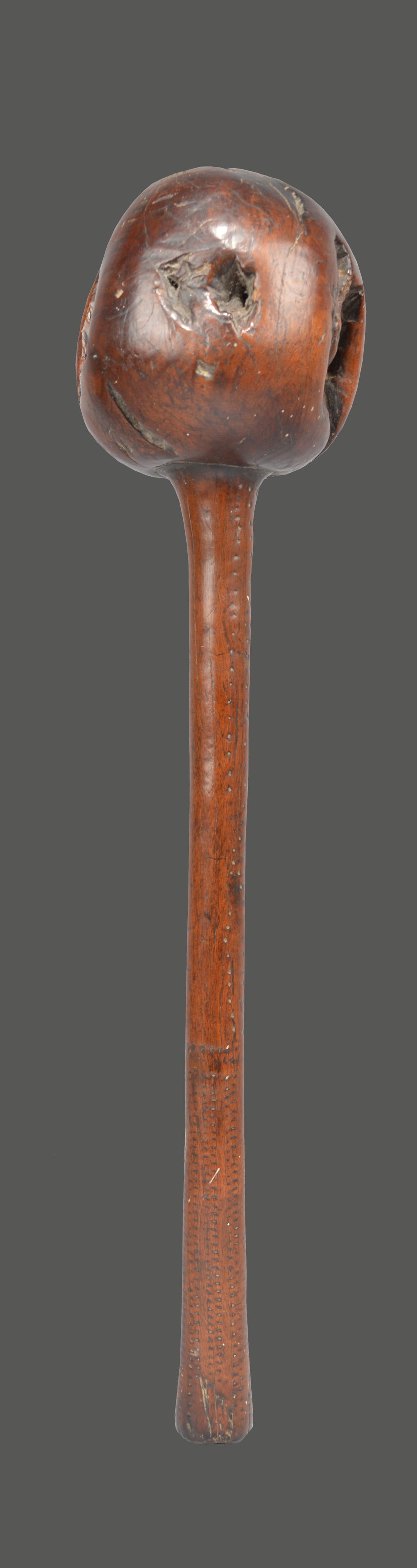 with a spherical head and a worn carved zig-zag grip, the shaft with a series of incised dots,