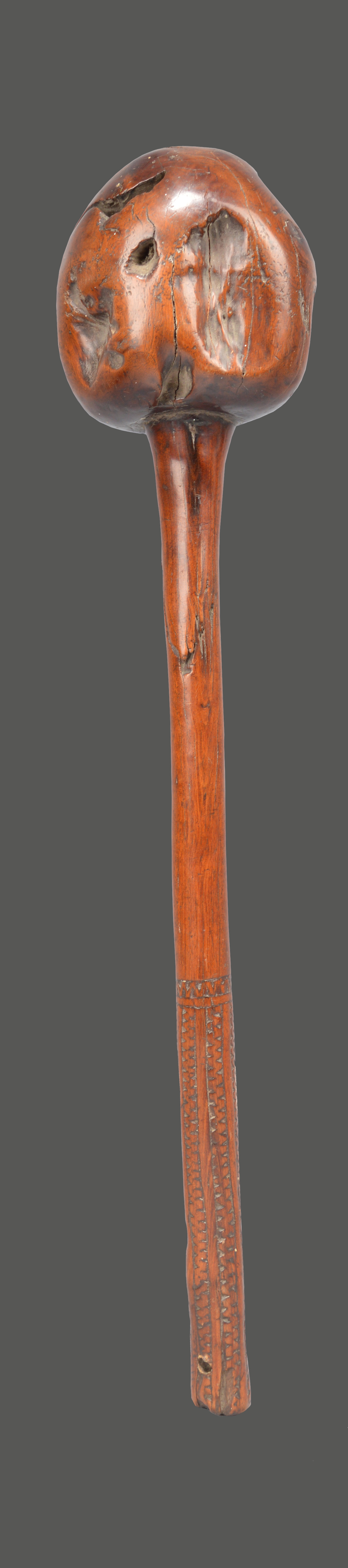 A Fiji throwing club i ula drisia Melanesia with an ovoid head and a carved zig-zag grip with a...