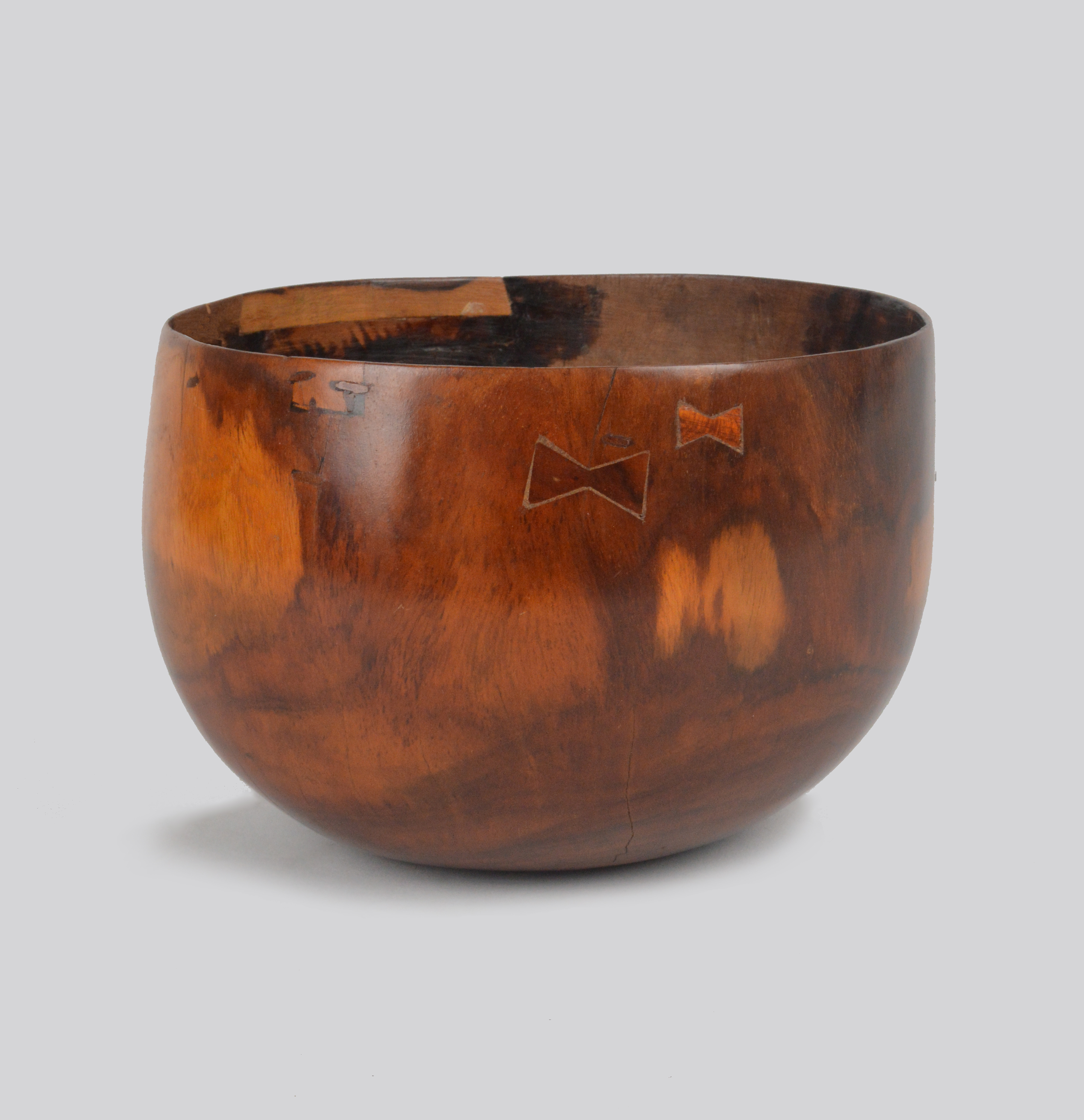 A Hawaii bowl Polynesia of deep form with seven butterfly and six patch repairs