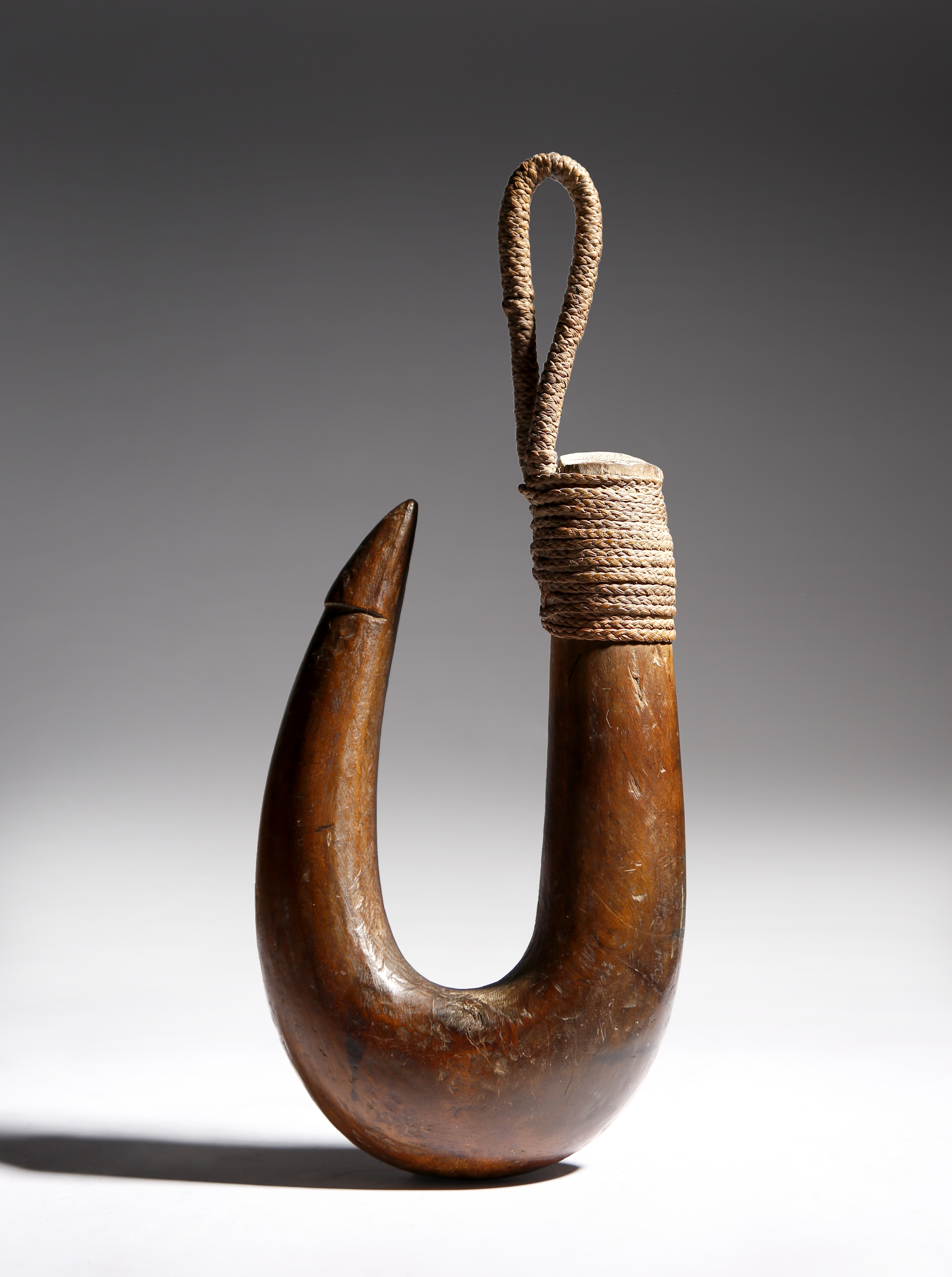 cf. see Adrienne L. Kaeppler. Polynesia - The Mark and Carolyn Blackburn Collection of Polynesian Art, 2010, p.272, pl.227 - "Ritual hooks were used by the priest of the island to invoke the gods before fishing and were considered taboo."