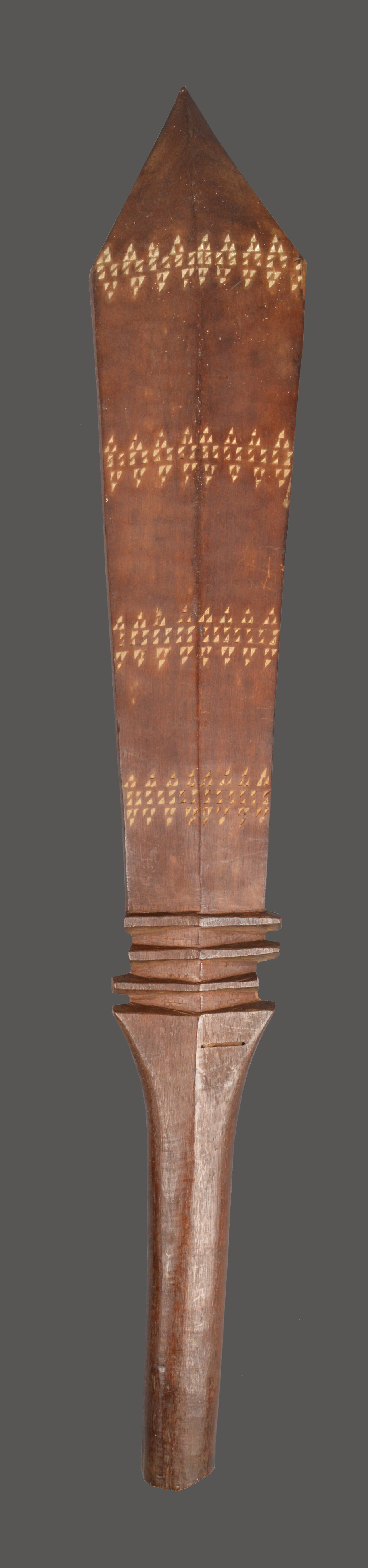 A Samoa short club Polynesia with a facet blade with lime filled triangle decoration and with...