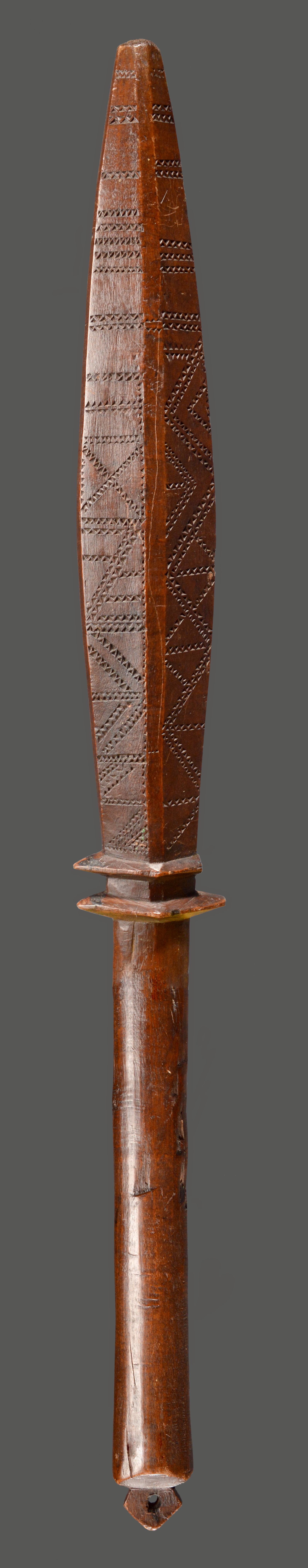 A Samoa short club Polynesia the facet blade with carved zig-zag decoration