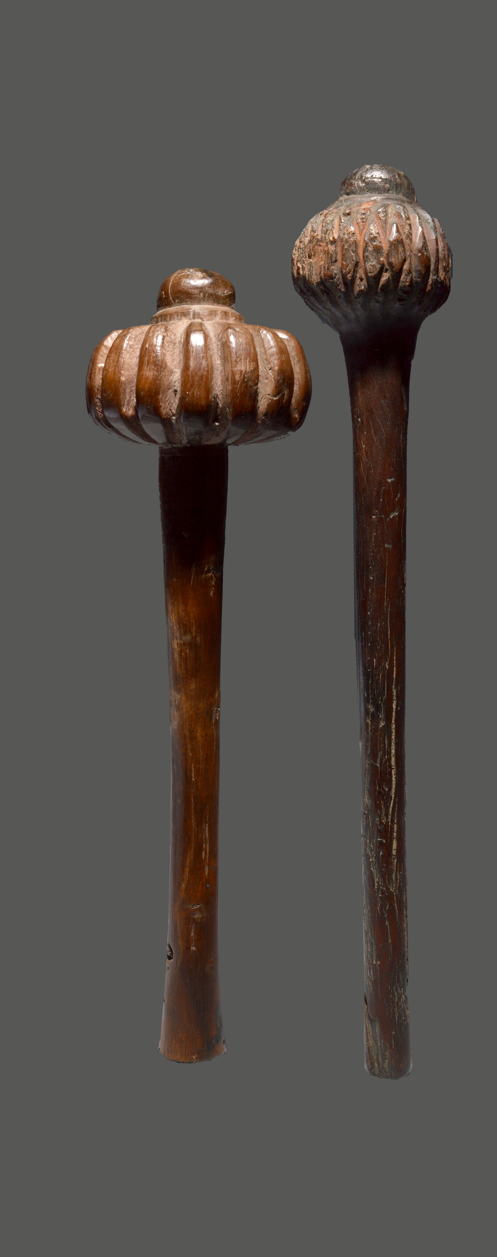 Two Fiji throwing clubs i ula tavatava Melanesia with ribbed heads