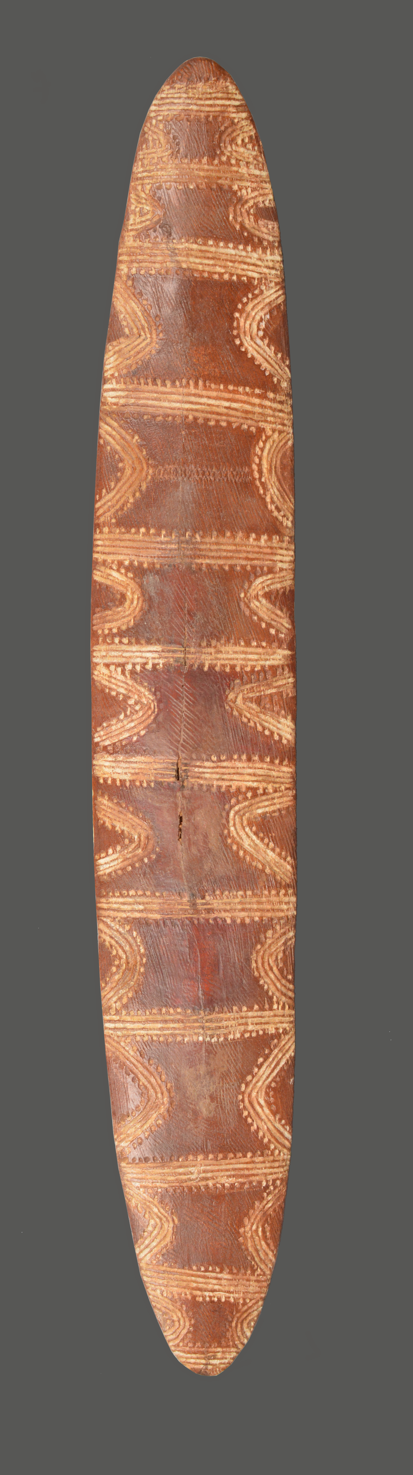 An Aboriginal narrow shield Australia with linear and dot carved decoration