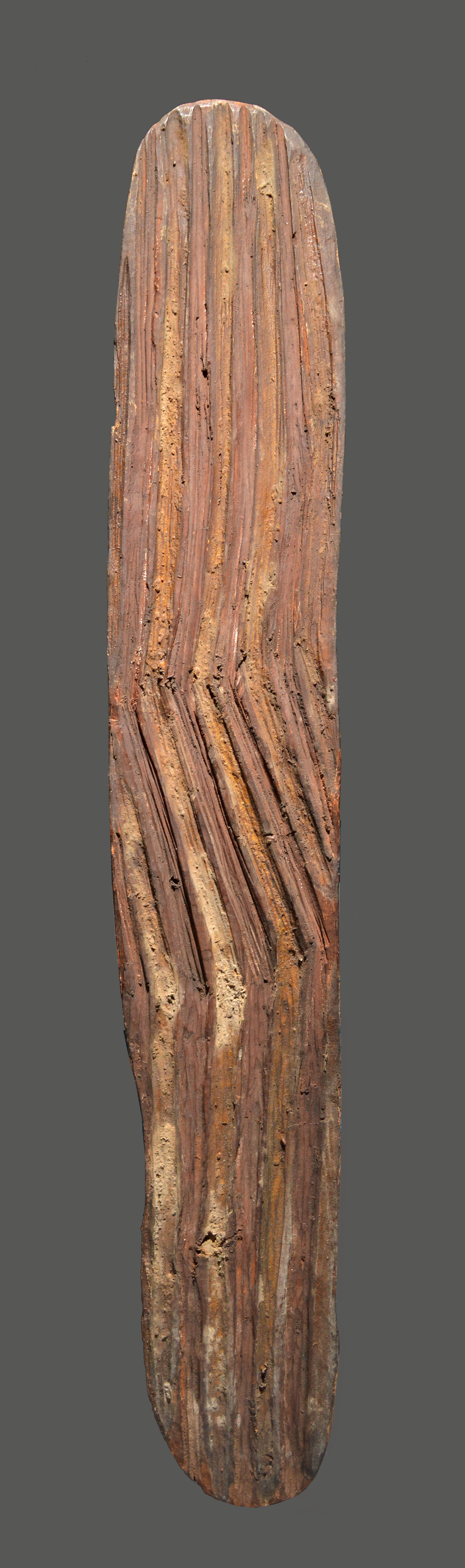 An Aboriginal wunda shield Western Australia with deep angled grooves with white and red pigment