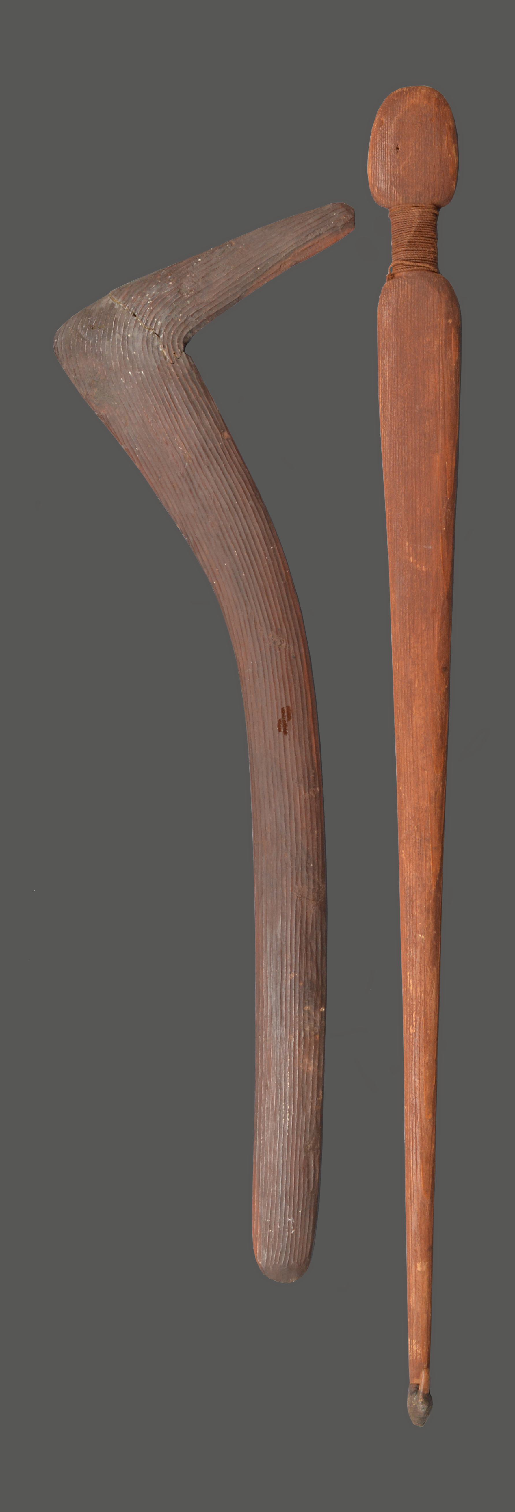 and an Aboriginal spear thrower, woomera, 95cm long. (2)