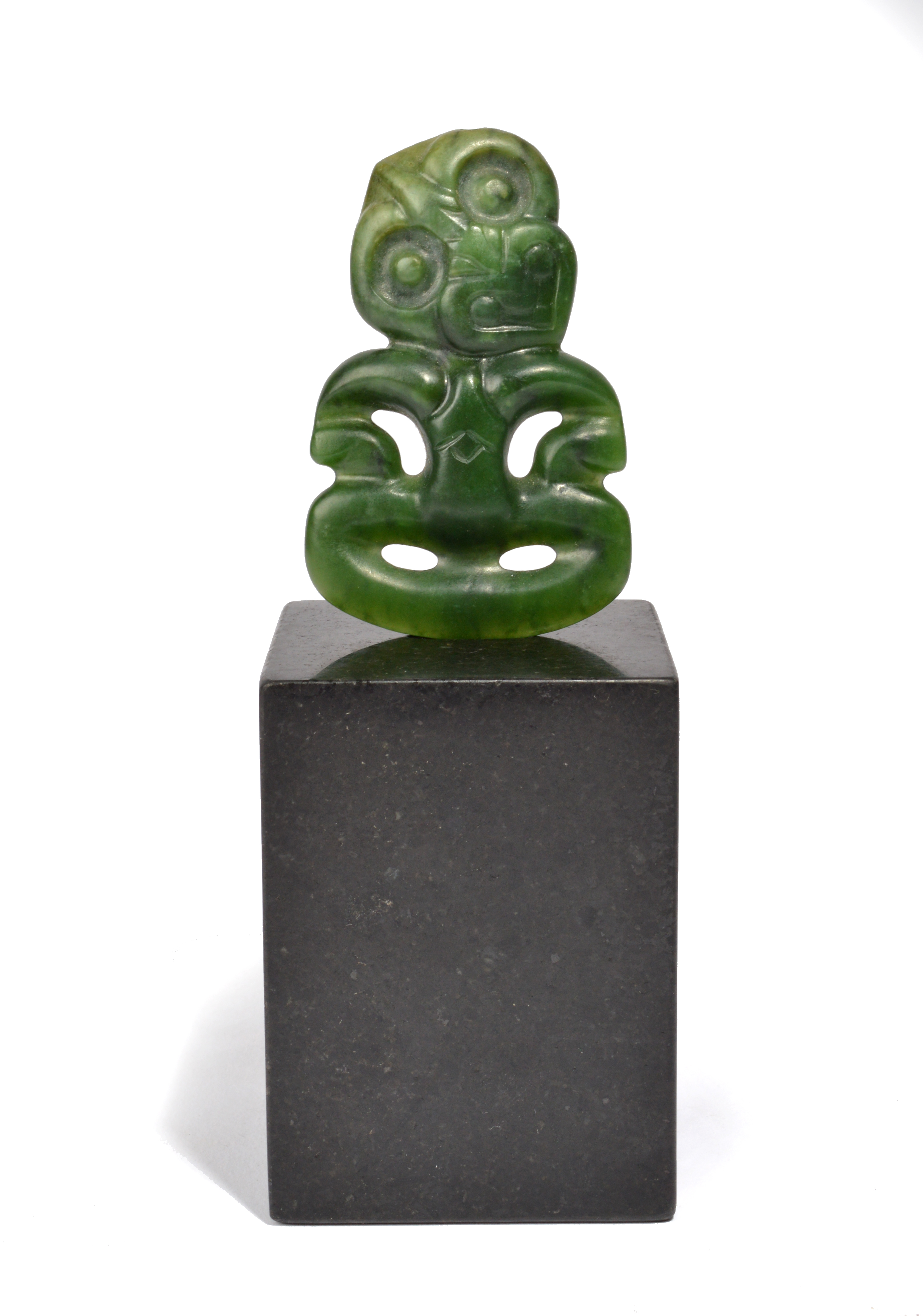nephrite with the arms on the hips and a suspension hole to the top of the angled head,