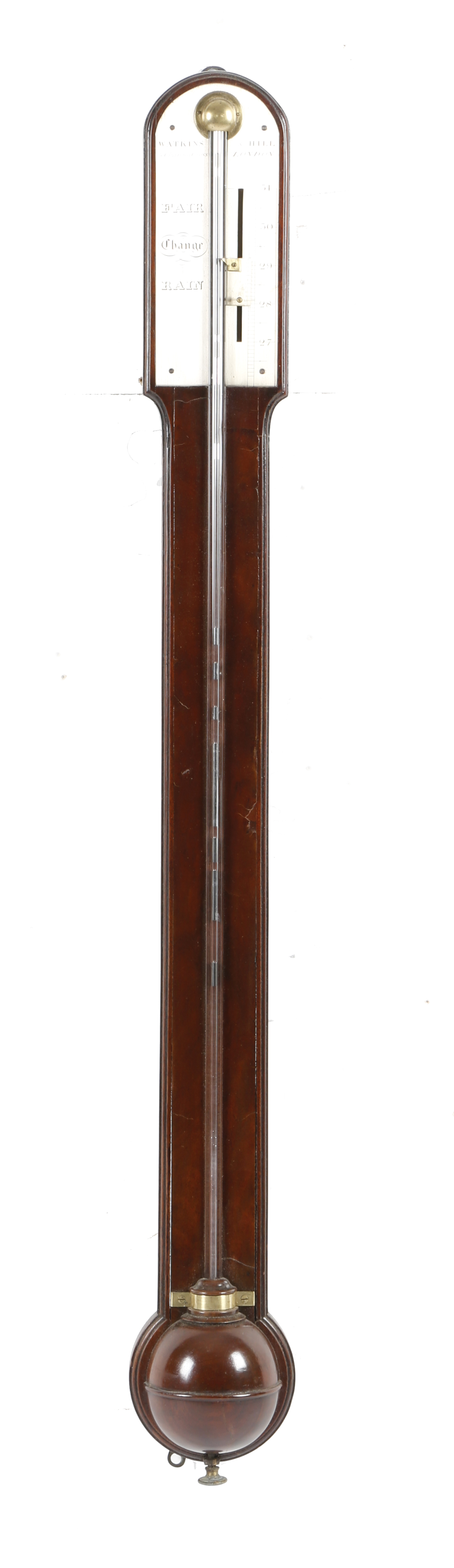 An early 19th century mahogany stick barometer by Watkins and Hill