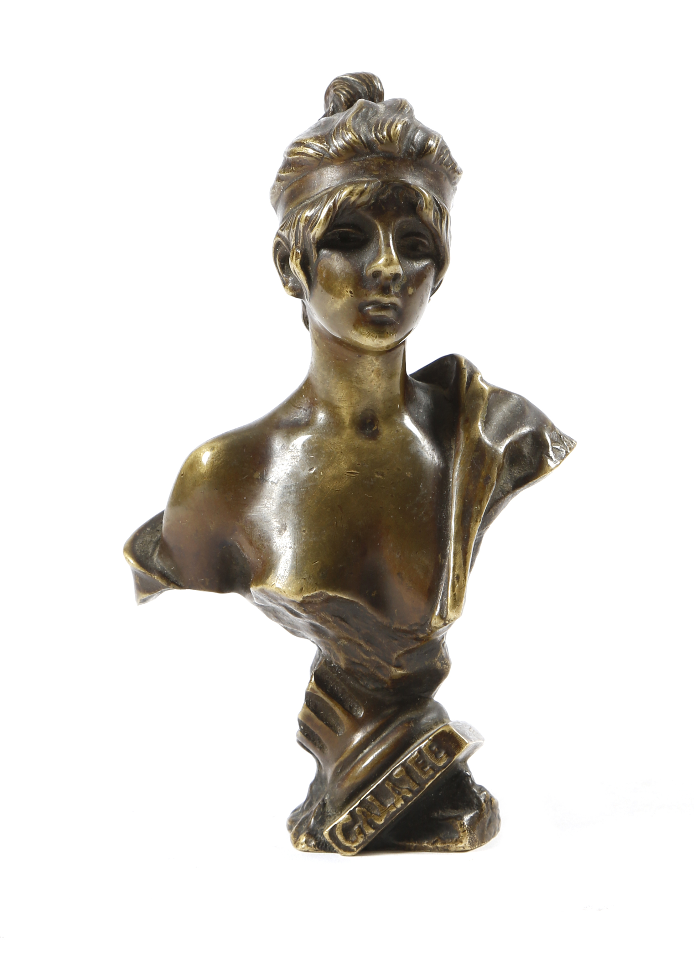 Emmanuel Villanis (French 1858-1914). An Art Nouveau bronze bust of a lady titled 'GALATEE', signed 'Villanis' and stamped 'B L', 14.5cm high.