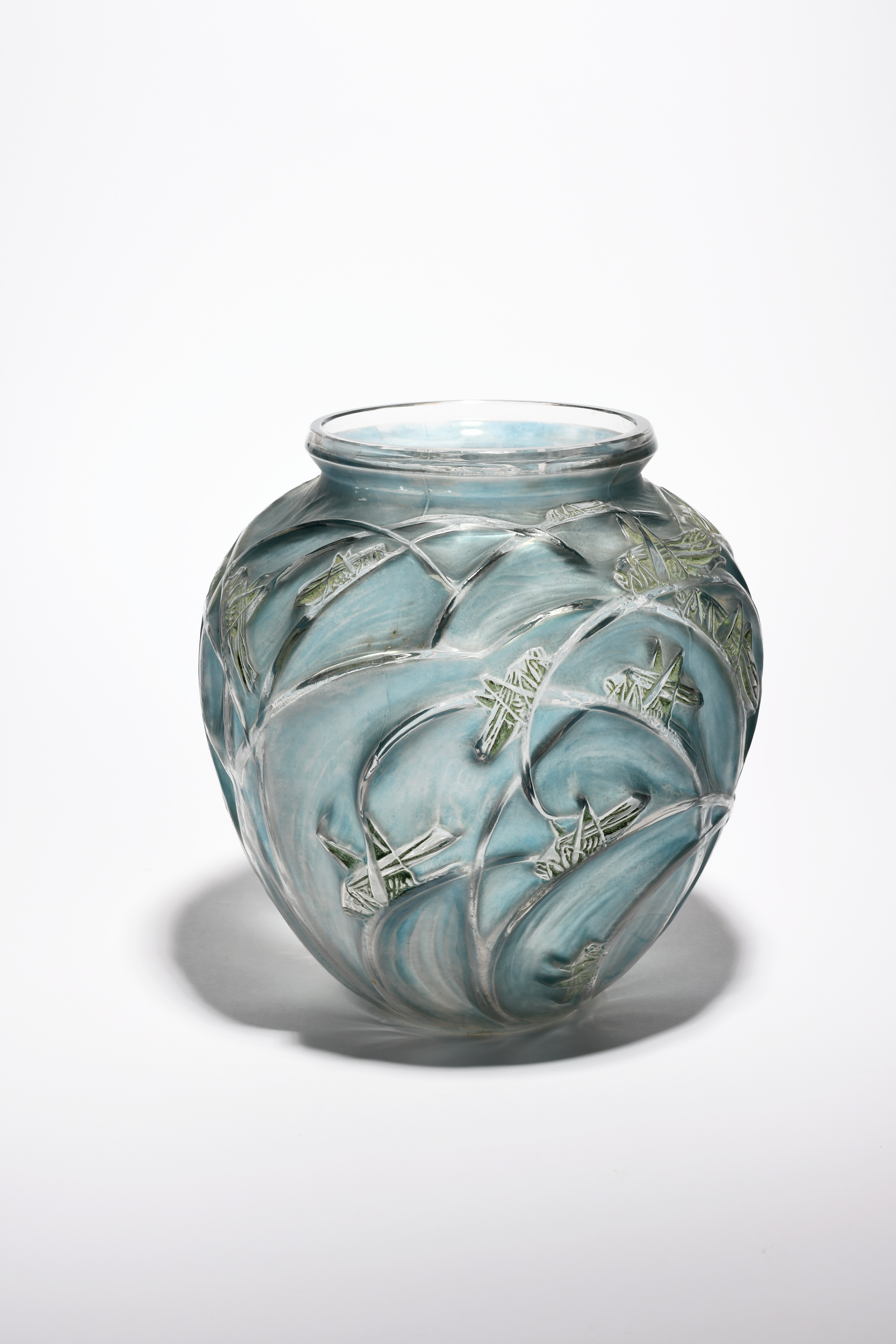 'Sauterelle' no.888 a Lalique clear and frosted glass vase designed by Rene Lalique