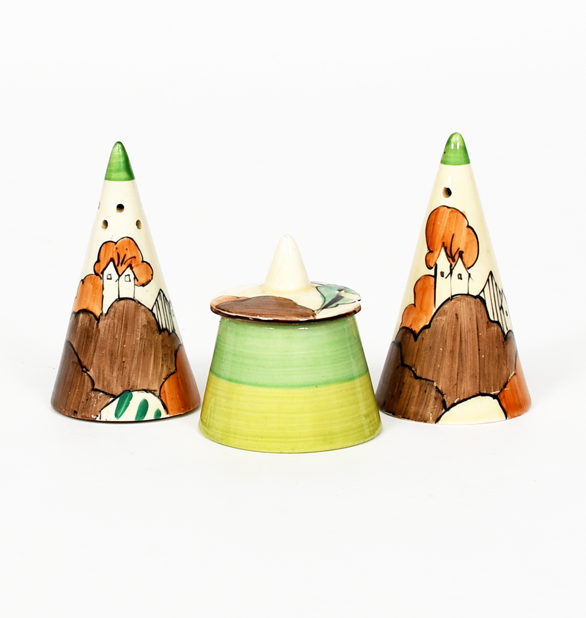'Alton' a Clarice Cliff Fantasque Bizarre Conical cruet set