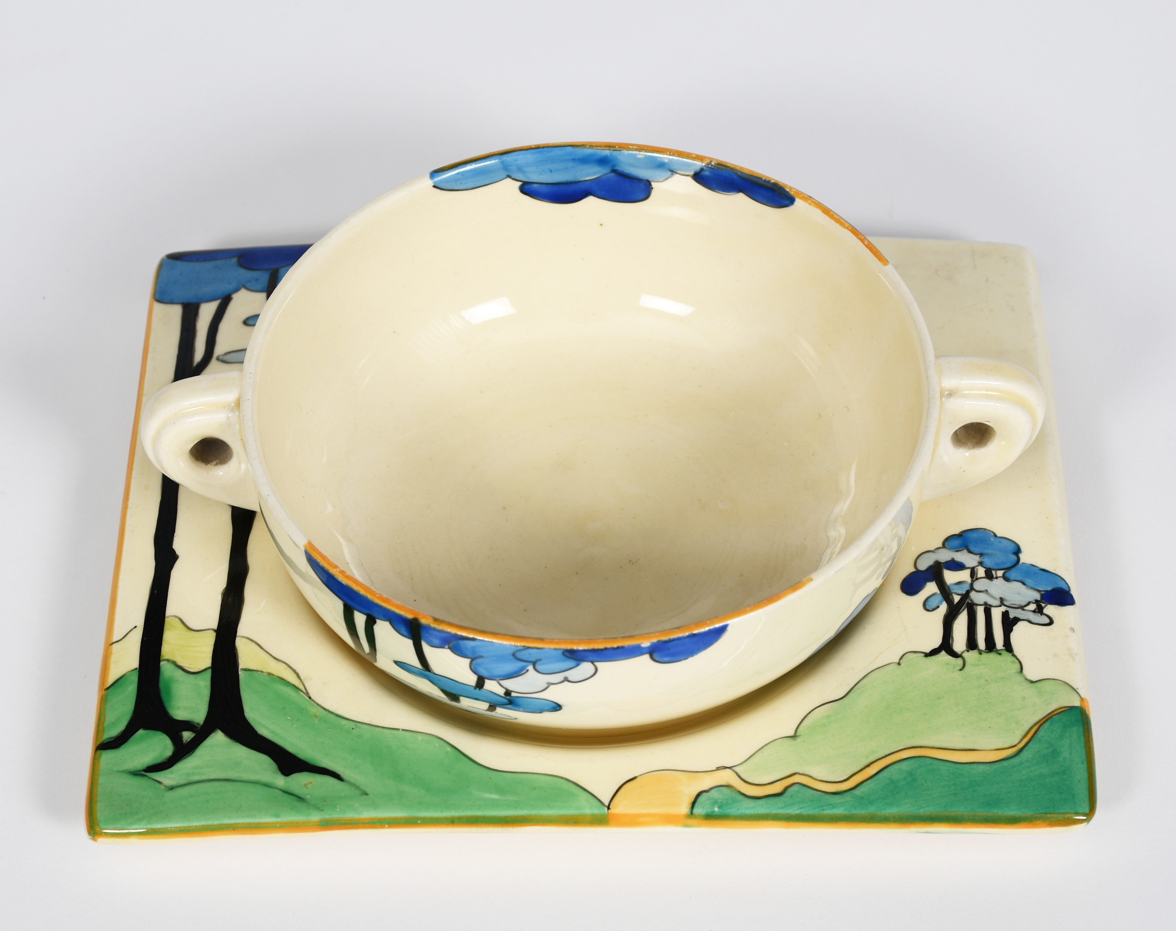 'Blue Firs' a Clarice Cliff Biarritz soup bowl and saucer