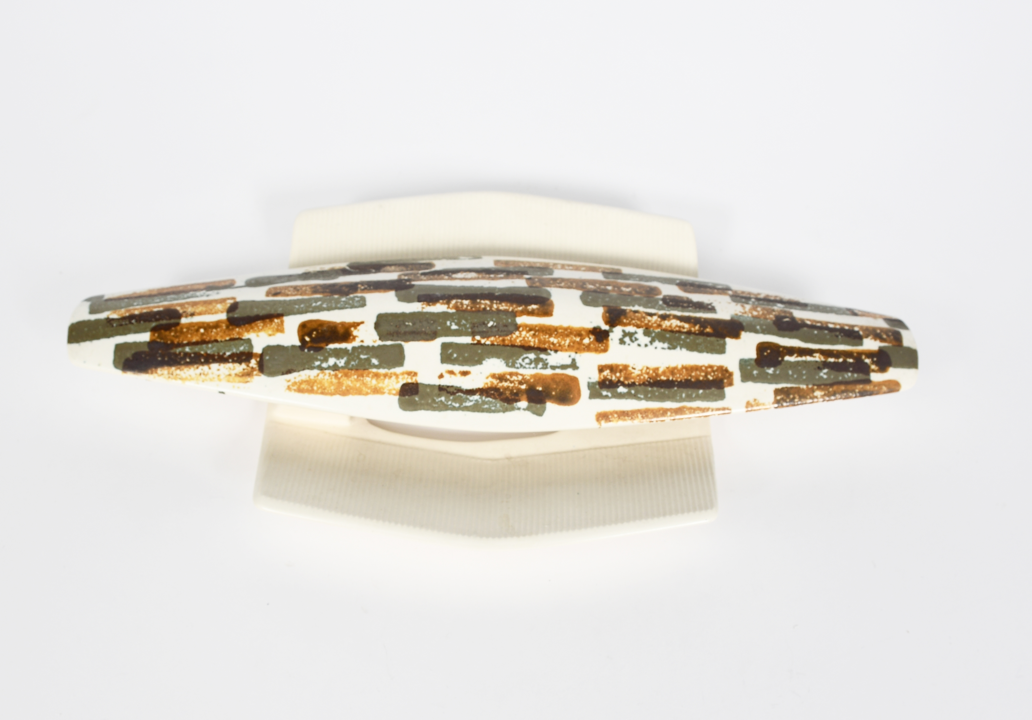 A rare Hornsea Pottery wall light designed by John Clappison, cast and screen printed with abstract design in olive and ochre, printed factory marks, 36cm. high