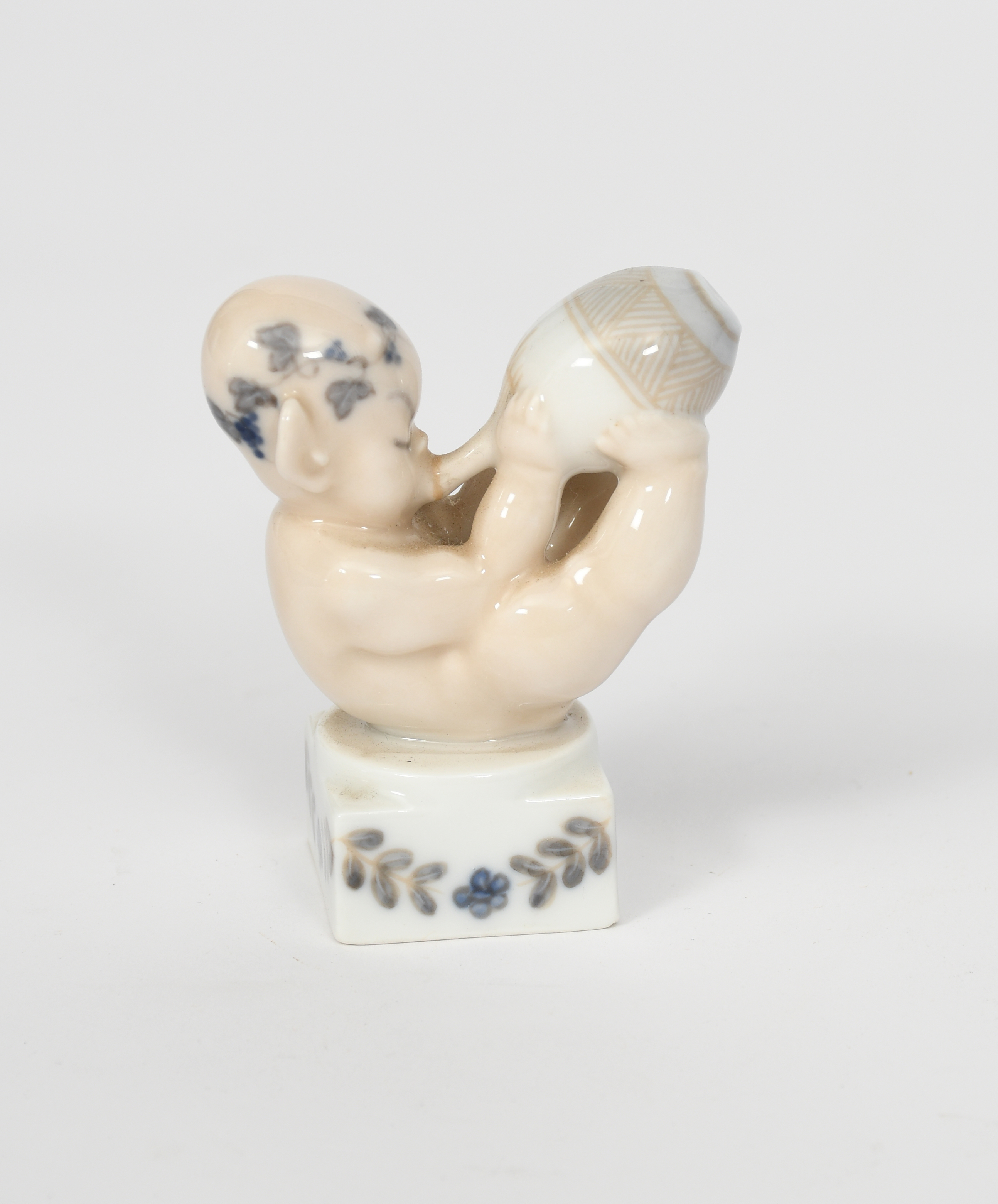 A Royal Copenhagen Cherub Drinking (Young Bacchus) designed by Arno Malinowski