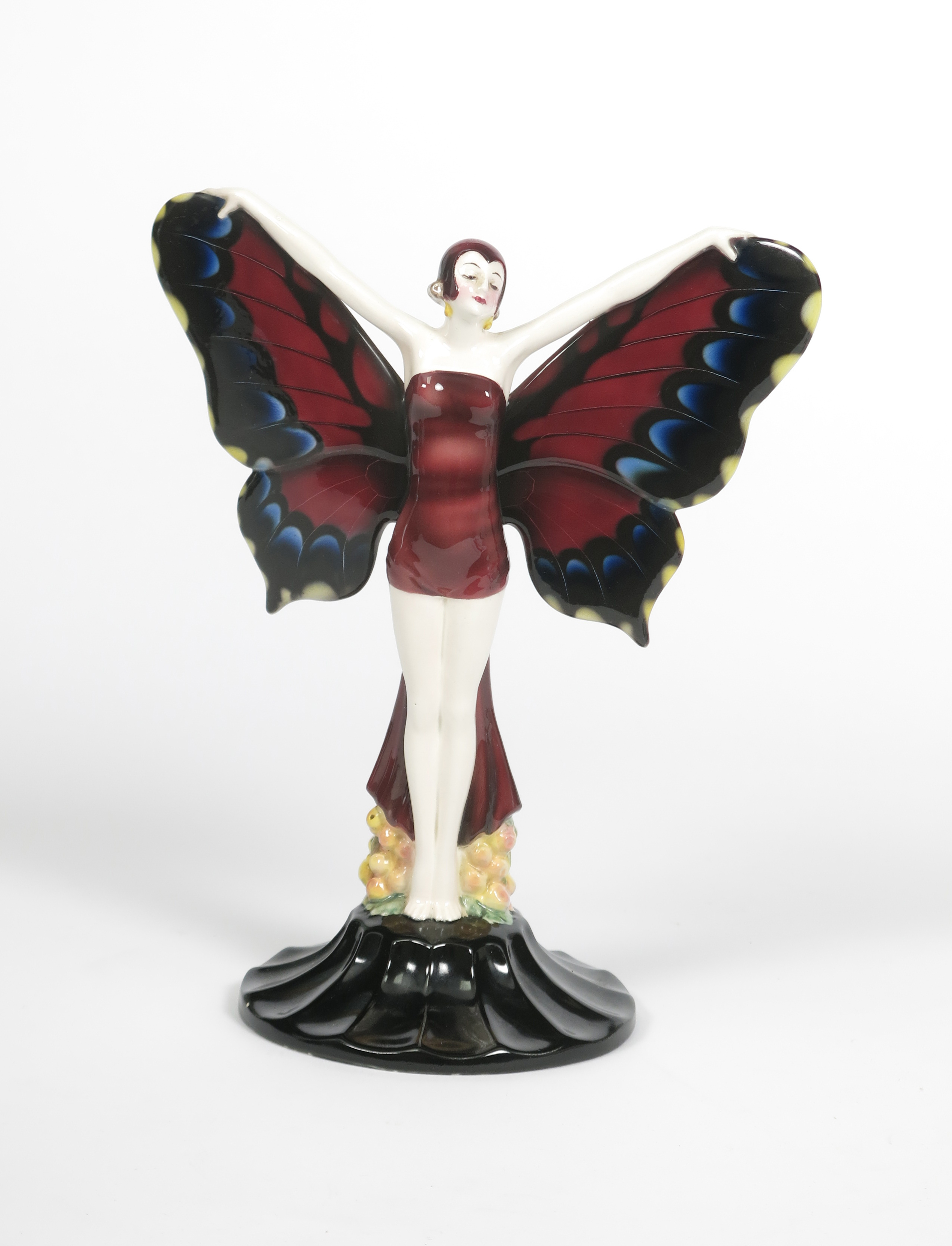 A rare Goldscheider Pottery Butterfly Girl figure designed by Josef Lorenzl