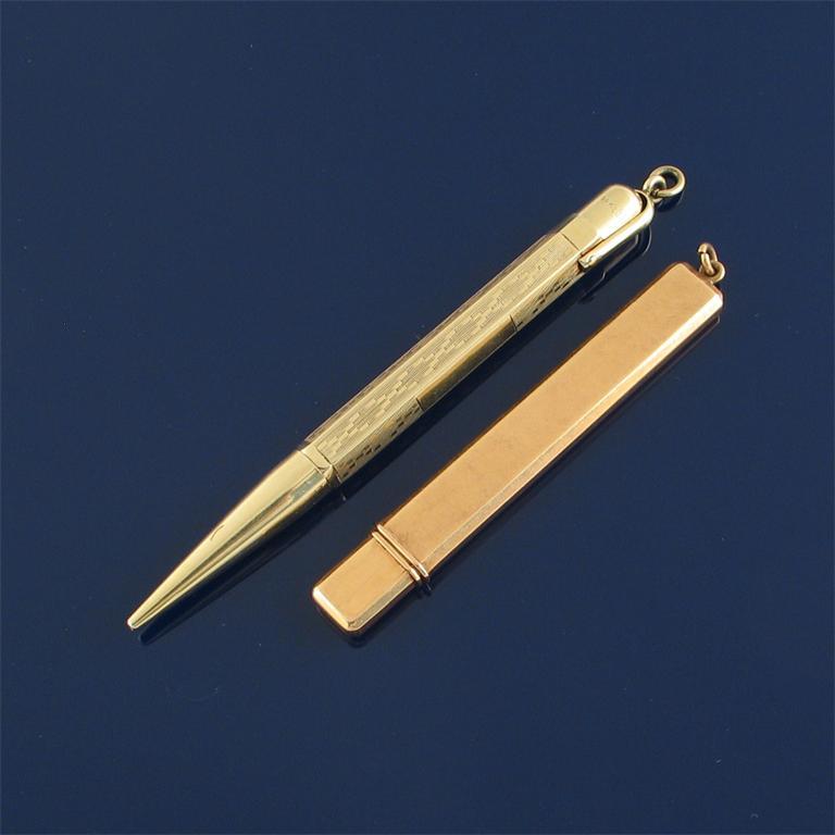 A 14ct gold propelling pencil, and a gold pencil holder.