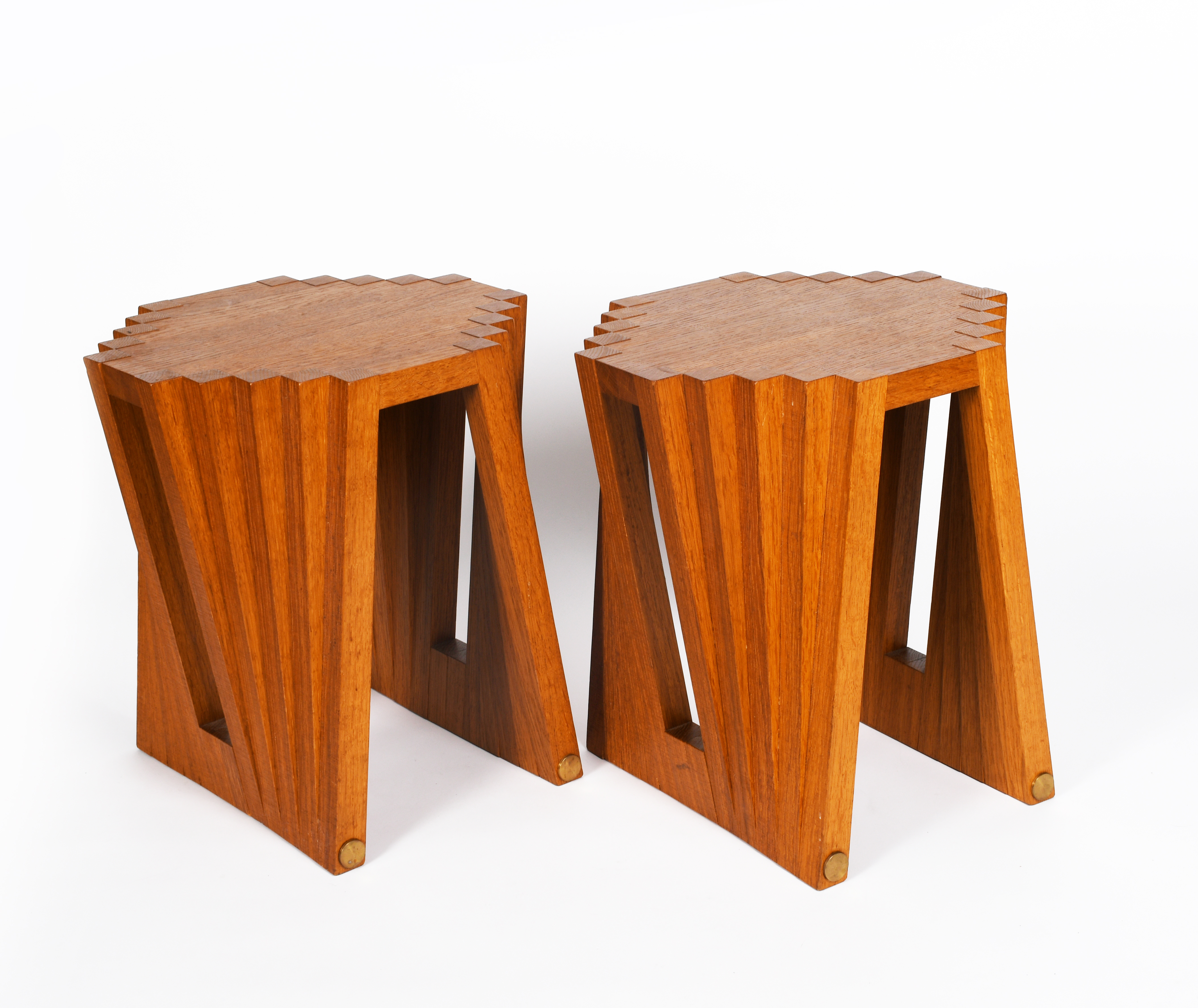 a pair of fumed oak Batten low tables, designed by Petter Southall and made by Petter Southall and Tom March at his I Tre Furniture studio, 2010, sold with a photocopy of the original receipt of purchase, 43cm high, 38cm wide. (2)