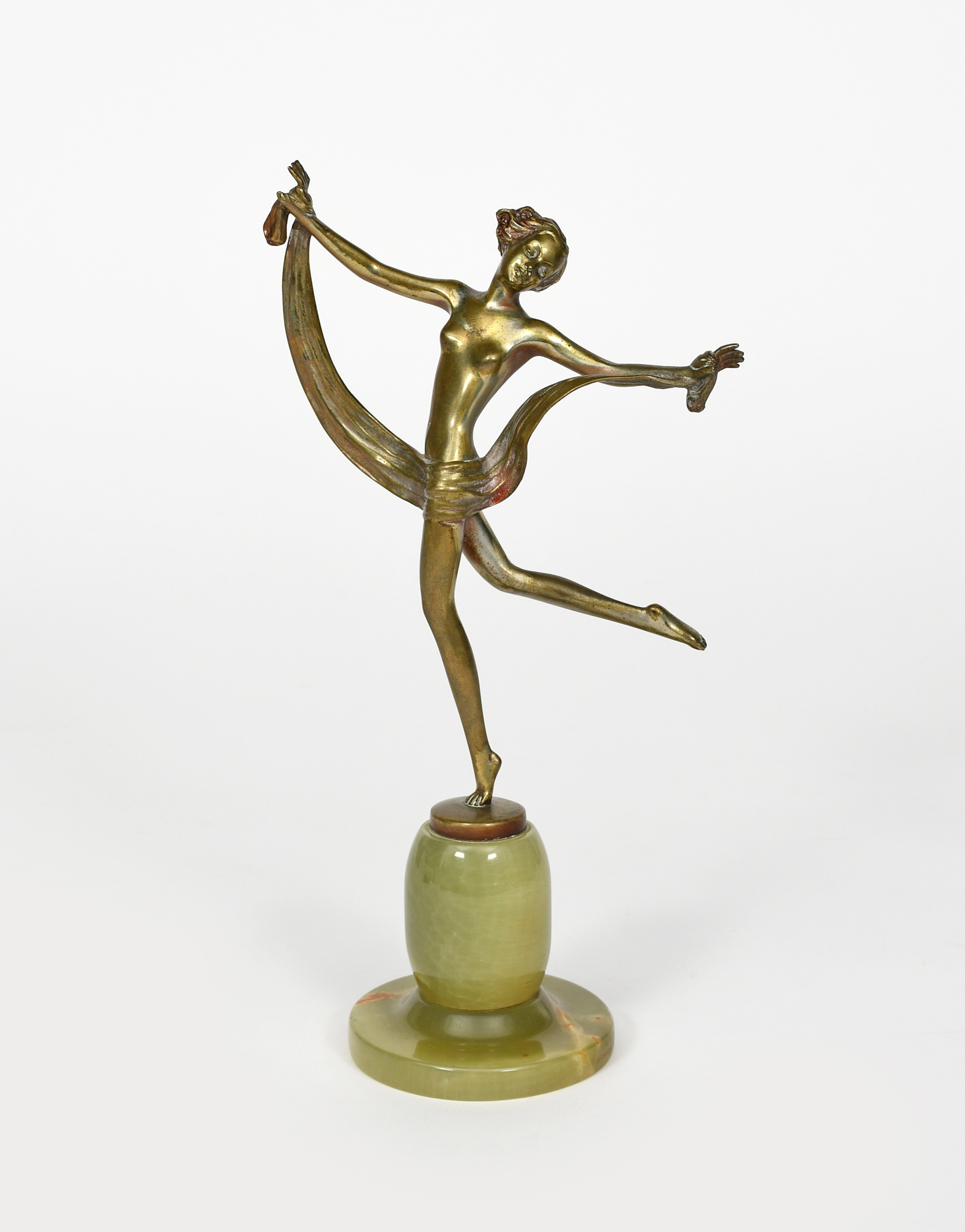 Josef Lorenzl (1892-1950) Scarf Dancer silvered bronze on a green