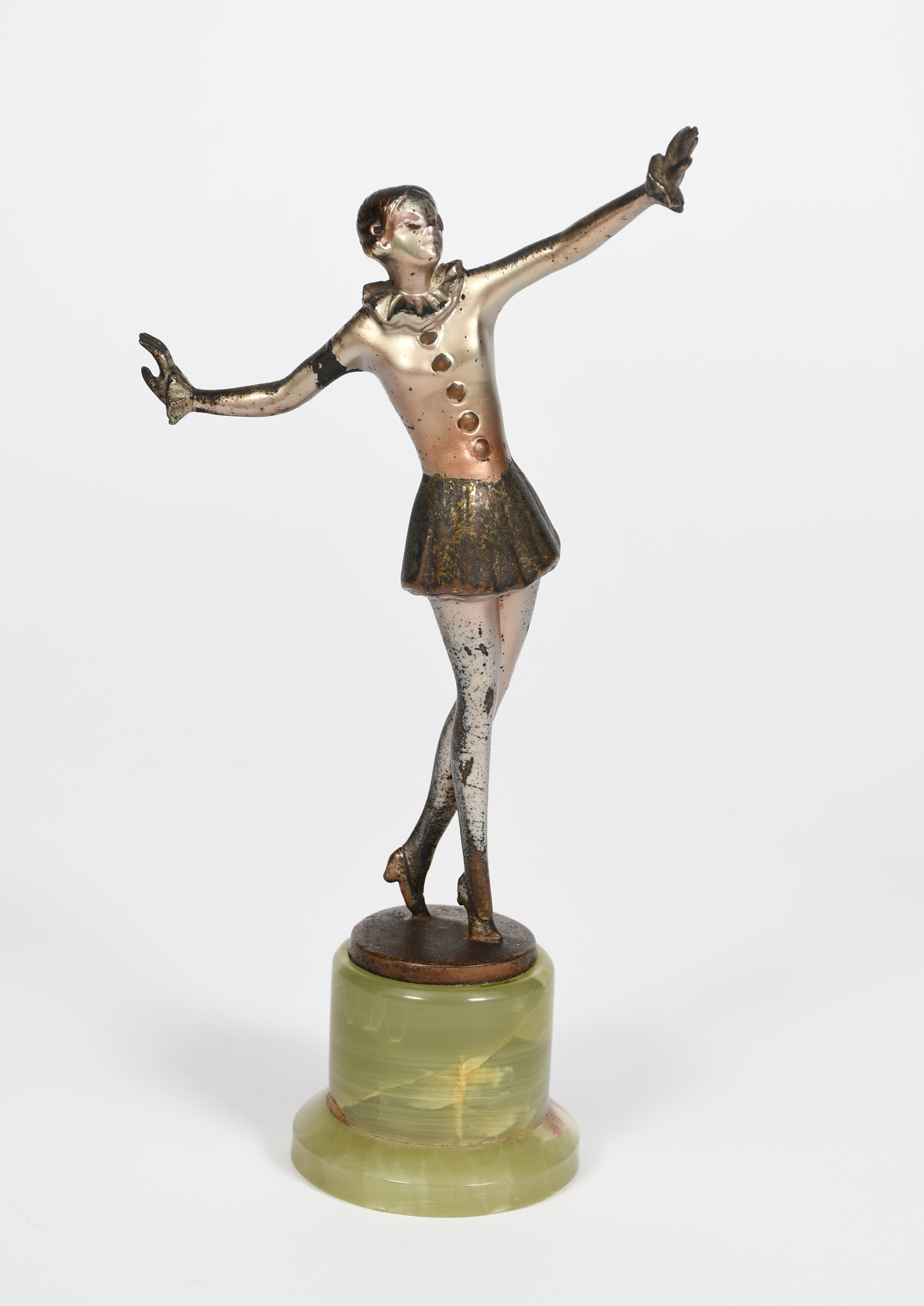 Josef Lorenzl (1892-1950) Dancer cold painted bronze on green veined onyx base signed in the...